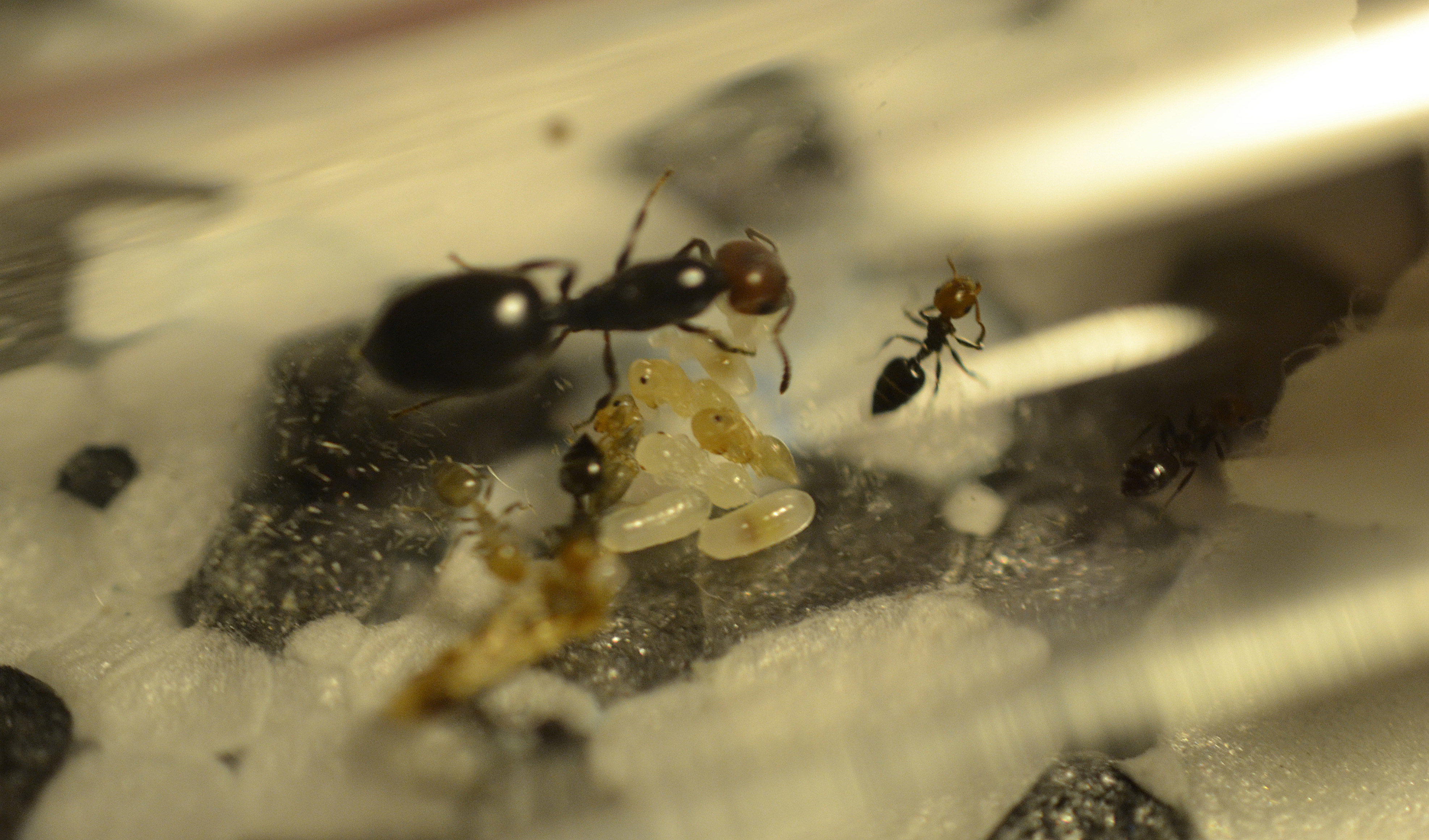Dimostrando di essere tutt'altro che timide, 2 operaie (durante l'operazione) riescono a fuggire e mi costringono ad una frenetica caccia alla formica