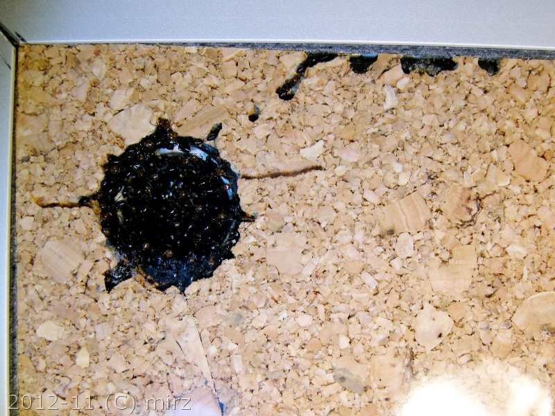 E poi, c'è una cosa curiosa e degna di nota, che non avevo mai visto o letto da altre esperienze; nei post precedenti di questo diario, riportavo la scoperta di tre maschi. Bene, questi tre, nell'ultimo mese, in tre momenti diversi hanno sentito il richiamo della natura ed hanno avuto l'impellenza di sciamare. Ebbene, tutti e tre, ripeto, a distanza di alcuni giorni, hanno terminato la loro esistenza rimanendo attaccati con le ali all'antifuga.