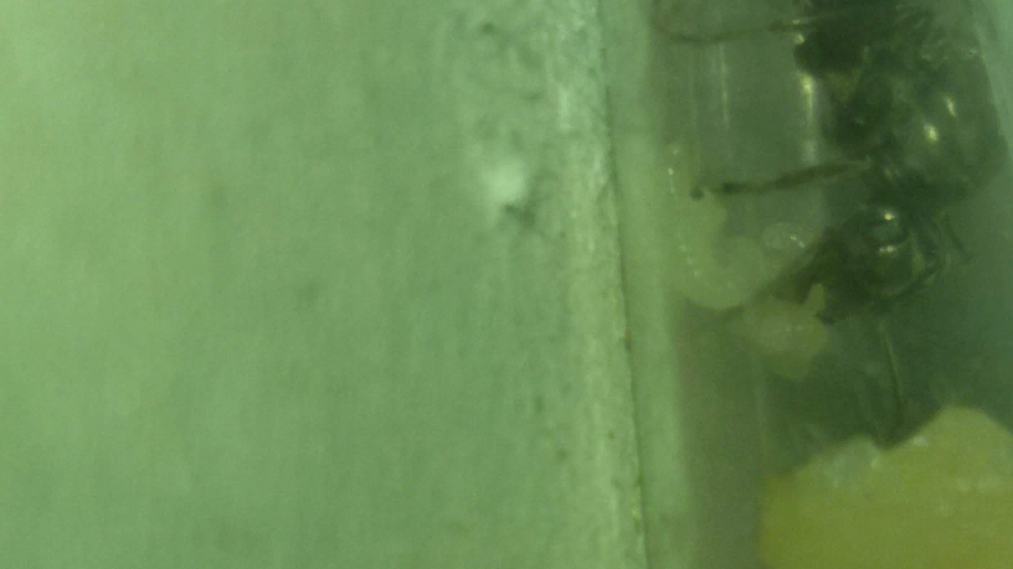 Adesso le larve sono più grandi e visibili, la regina le cura continuamente e probabilmente le nutre con delle uova.
