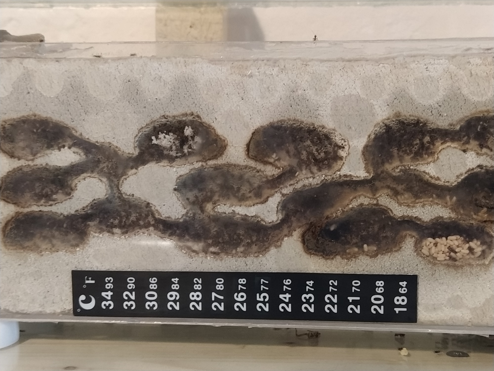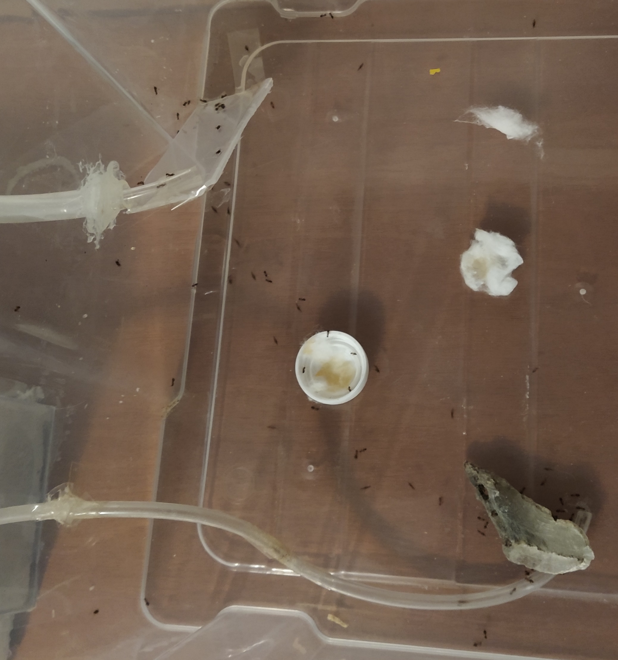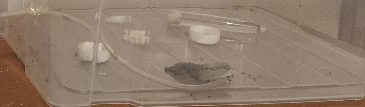 Un altro problema è il tubo troppo piccolo, le formiche faticano a farci passare il cibo, inizialmente avevo usato un tubo più grande per il nuovo formicaio (rosso) però dopo 3 giorni nessuna lo aveva attraversato, poi ho scoperto che il tubo era per loro repellente, una volta inserito il tubo più piccolo all'interno di quello grande, le formiche hanno colonizzato il nuovo formicaio. Far bollire il tubo gli ha fatto perdere la trasparenza e non mi va bene, ho provato a lavare l'interno con acqua calda e sapone ma resta repellente, quindi per ora le formiche continuano a usare il tubo piccolo