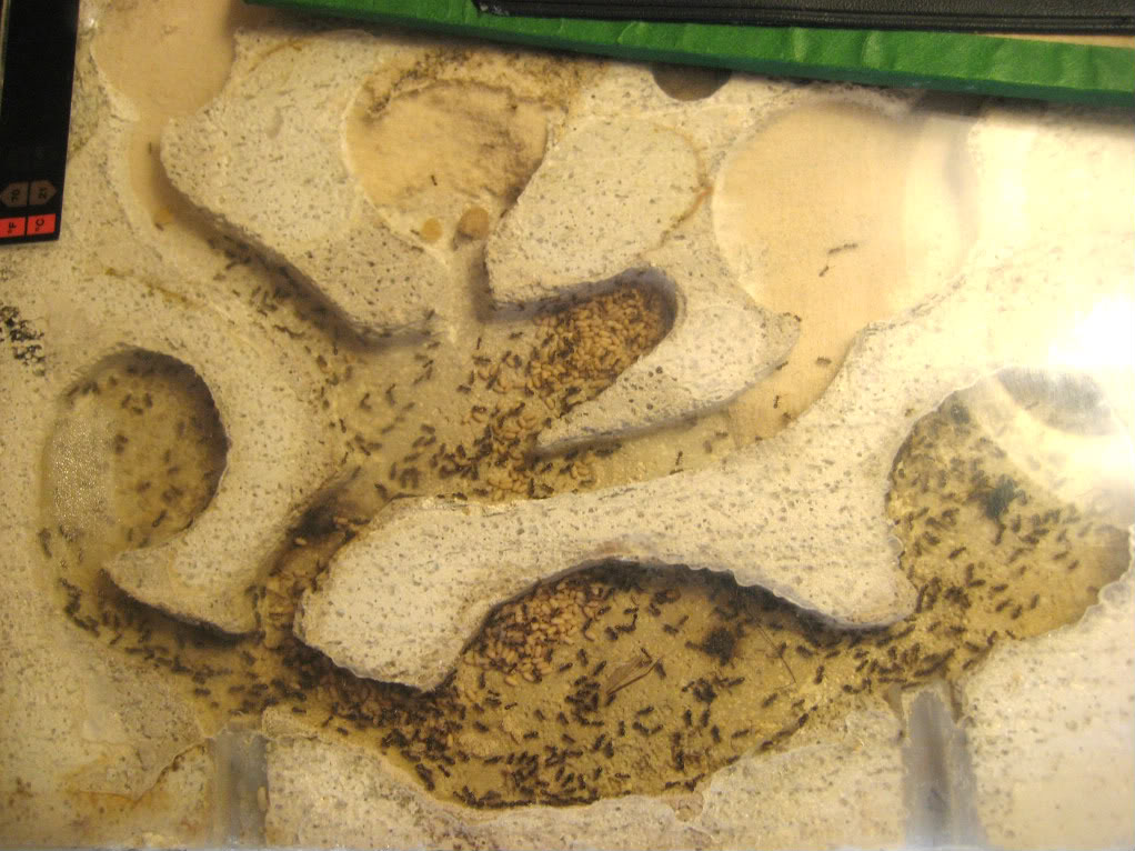 Salve a tutti dico subito che sono un neofita e da circa un mese ho una regina di Lasius niger con due operaie, la tengo in una provetta collegata ad un'altra provetta contenente la camera d'acqua e una o due camole della farina, insomma una mini camera di foraggiamento, ho dovuto fare così perché la provetta con cui mi e' arrivata la regina era senza camera d'acqua.
