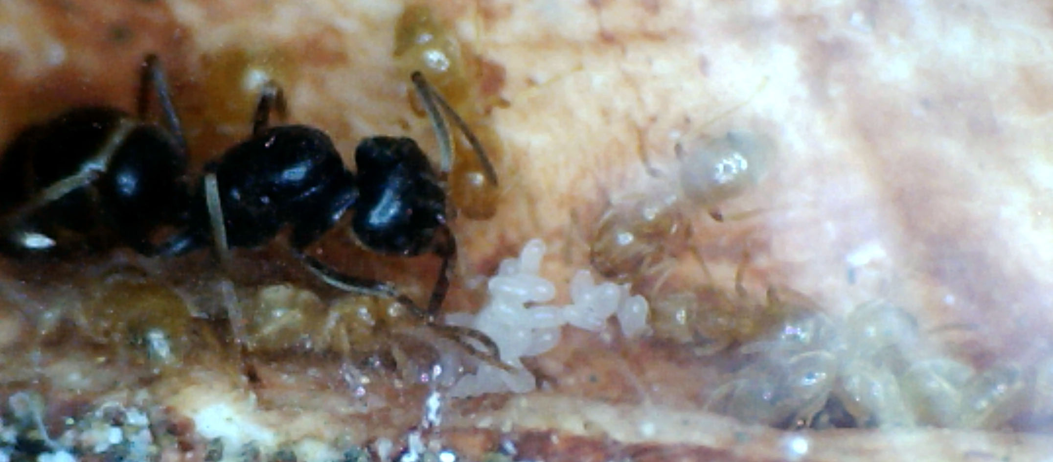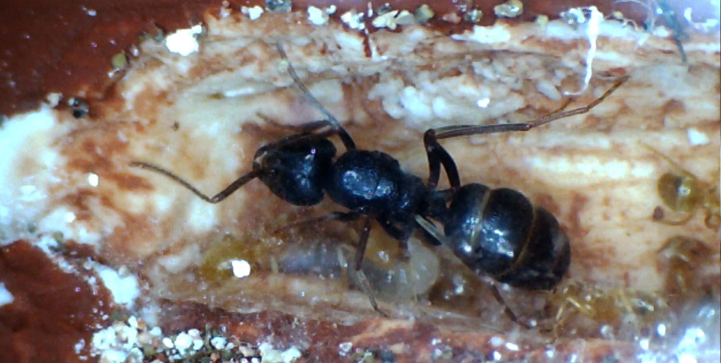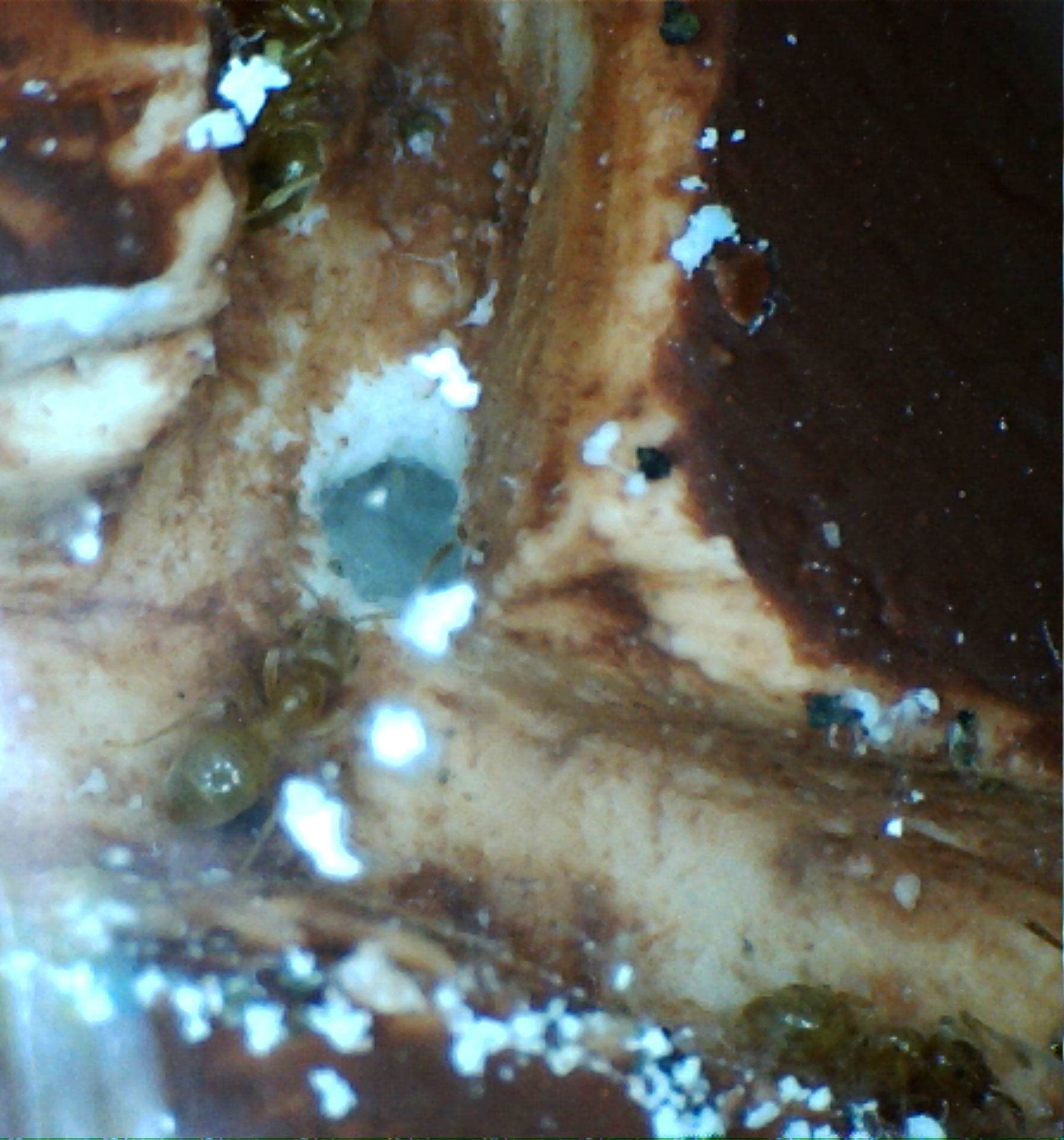 Hanno provato a scavare ovunque ma ora si sono calmate, e per umidificare adesso metto il formicaio a bagno in 2 cm d'acqua ogni 2 giorni. La regina ha l'addome sembre ben dilatato ed è curata dalle operaie, le uova sono sempre tenute in bocca dalle operaie che non smettono mai di curarle, come l'anno scorso...