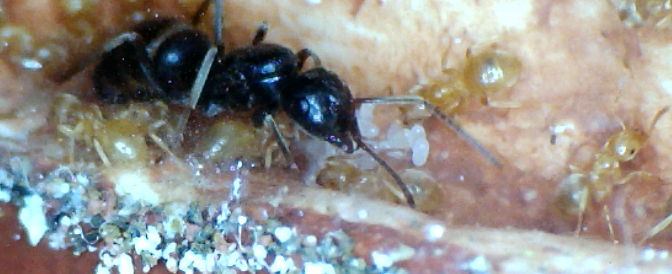 Per questo sto dando loro collemboli da catturare come se fossero in natura, e piccoli lombrichi, per ora i lombrichi li hanno tutti fatti fuori. Hanno nutrito le loro larve e le hanno portate allo stadio di pupa, vedremo cosa fanno con queste, il problema è che da 100 sono passate a 60...40 sono sparite tra le morti fisiologiche e la fuga...maledette, comunque io un anno fa avevo alla fine meno di 20 operaie che dovevano nutrire 50 larve, forse per quello non riuscivano...vediamo ora che sono 3 volte tanto...