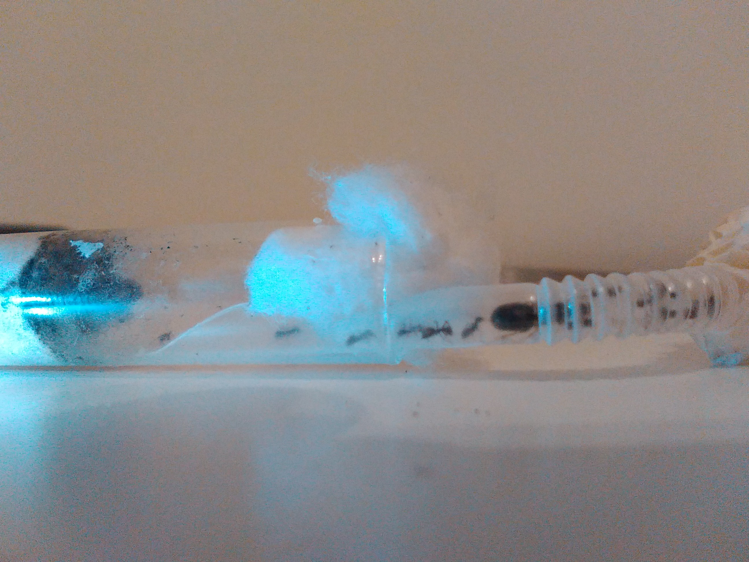 era ora di cambiare provetta, la muffa nera copriva completamente la vista delle formiche e l'acqua era quasi esaurita.