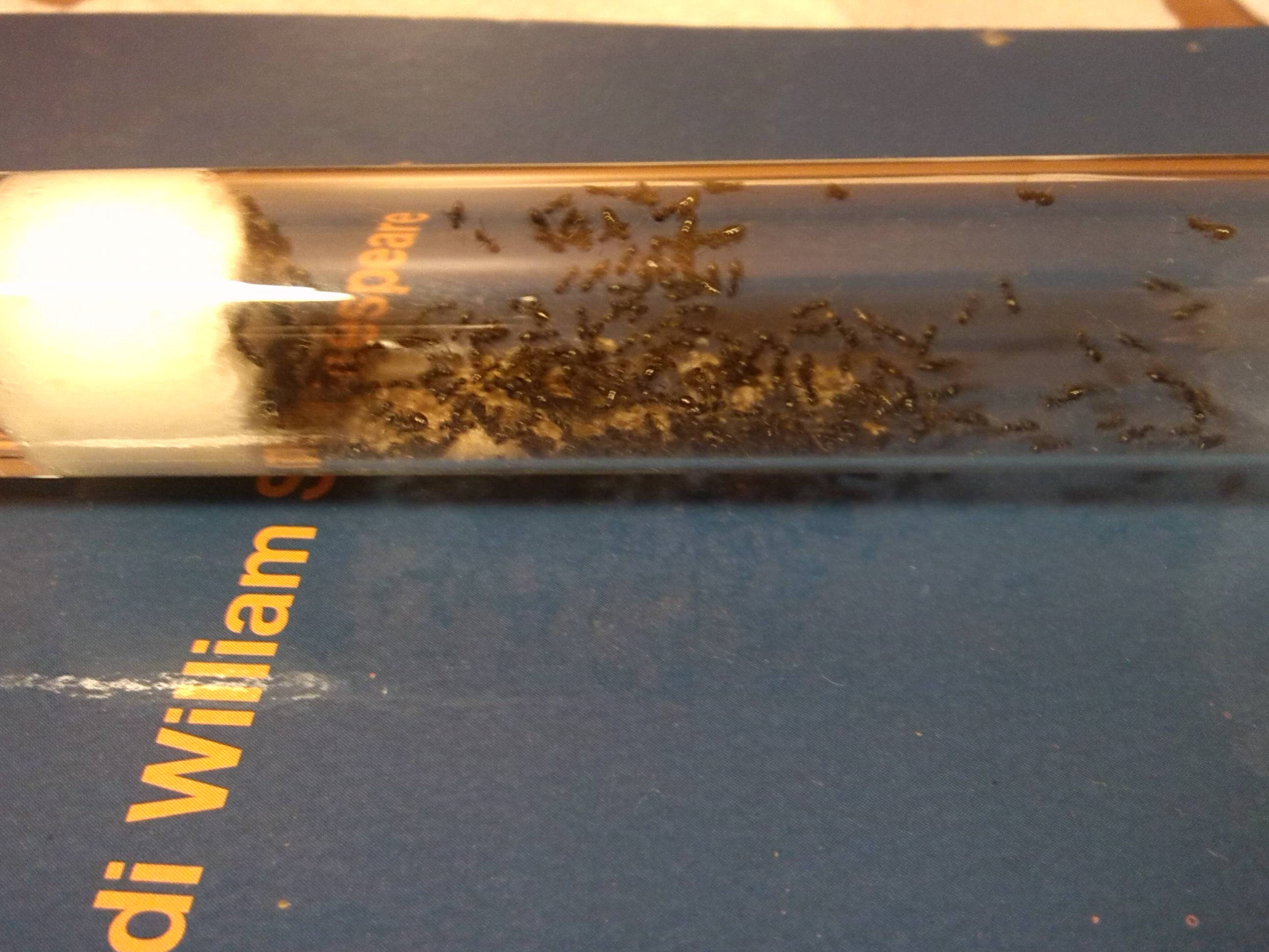 Complimenti, ne hai di operaie! Direi che potresti quasi pensare ad un mini formicaio per la fine dell'estate. Le alimenti in provetta o sono aperte in arena?