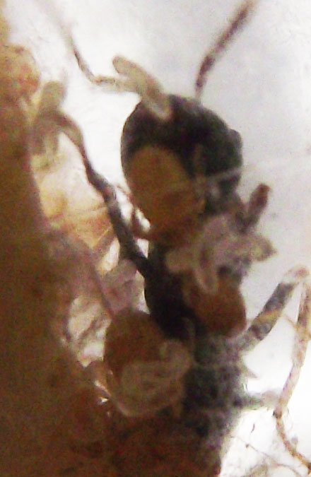 Brutta notizia...larve totalmente sparite...prima mi sembrava di vedere la parte scura delle larve confusa nel cotone...ora non vedo più nulla...è vero sono piccole ma non ne vedo...prima la regina ne aveva una in bocca e la sostava ora non ne vedo più...