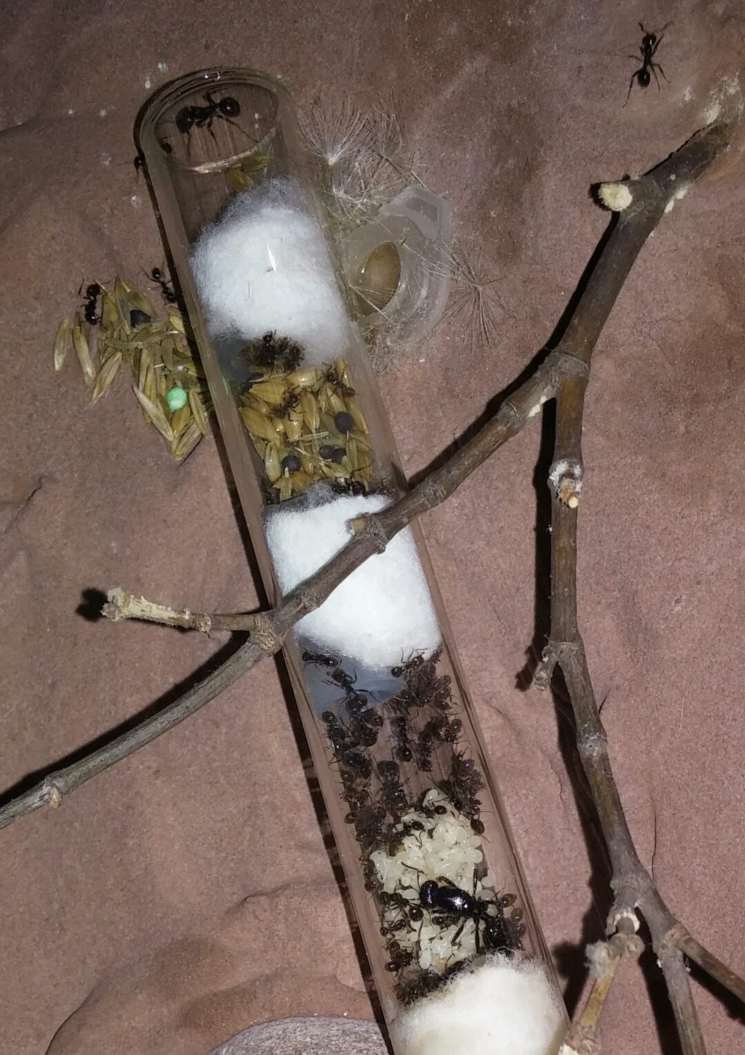 Non convinto ancora dell precedente formicaio ho spostato la provetta in un formicaio nuovo (neppure questo mi convince .-.) comunque dall'ultimo aggiornamento il boom demografico è stato abbastanza evidente! :) queste sono foto del 26 aprile :)