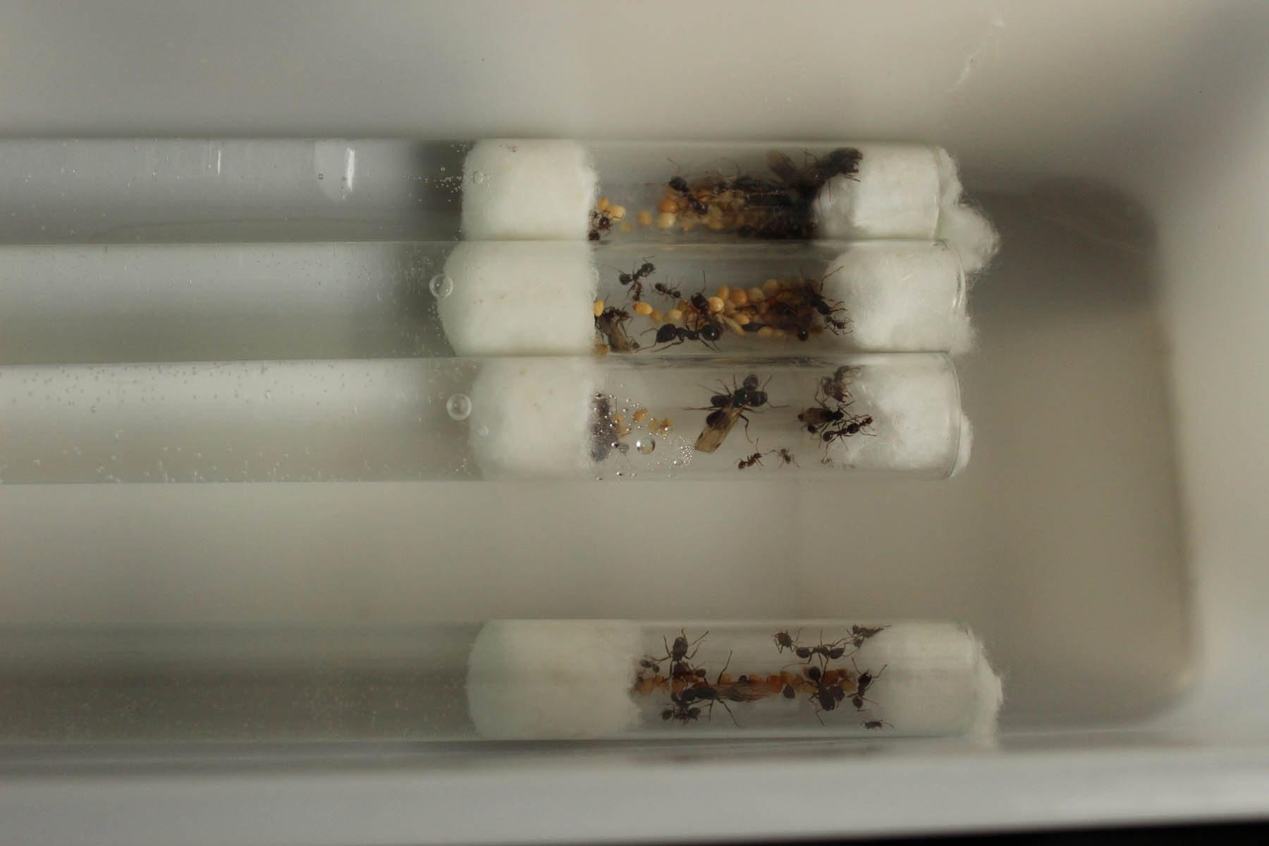 Oltre alle 4 regine precedenti, durante lo scorso Entomodena è successo che due regine dealate si sono allontanate dal formicaio (anzi, sarebbe più corretto dire che un gruppo di operaie le hanno prese e trascinate via).