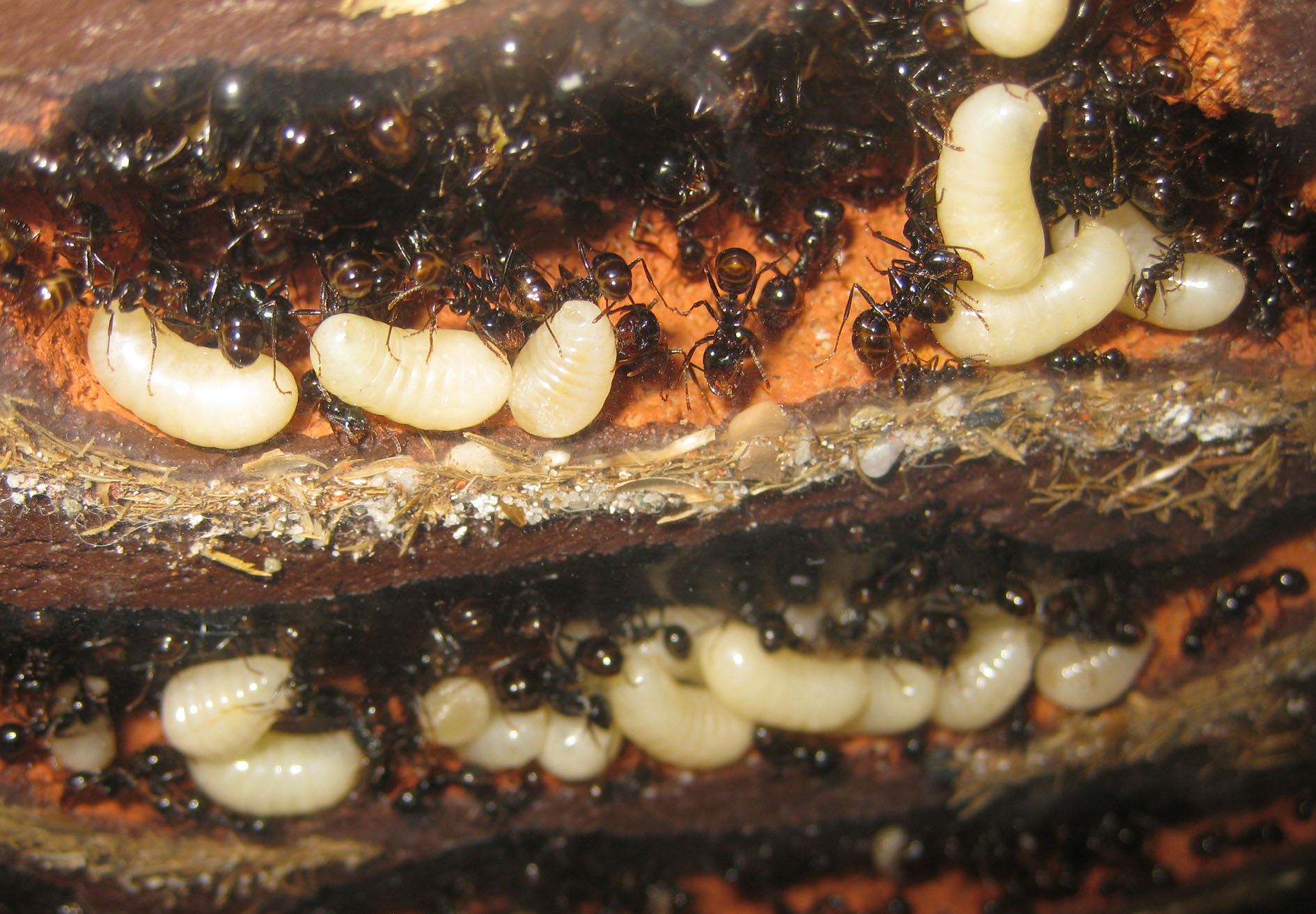 La quantità recuperata è stata di almeno 2000 formiche, cosa che mi fa stimare la popolazione totale superiore alle 10.000. La covata presente (quasi tutte larve appena schiuse) è di almeno 200 larvette.