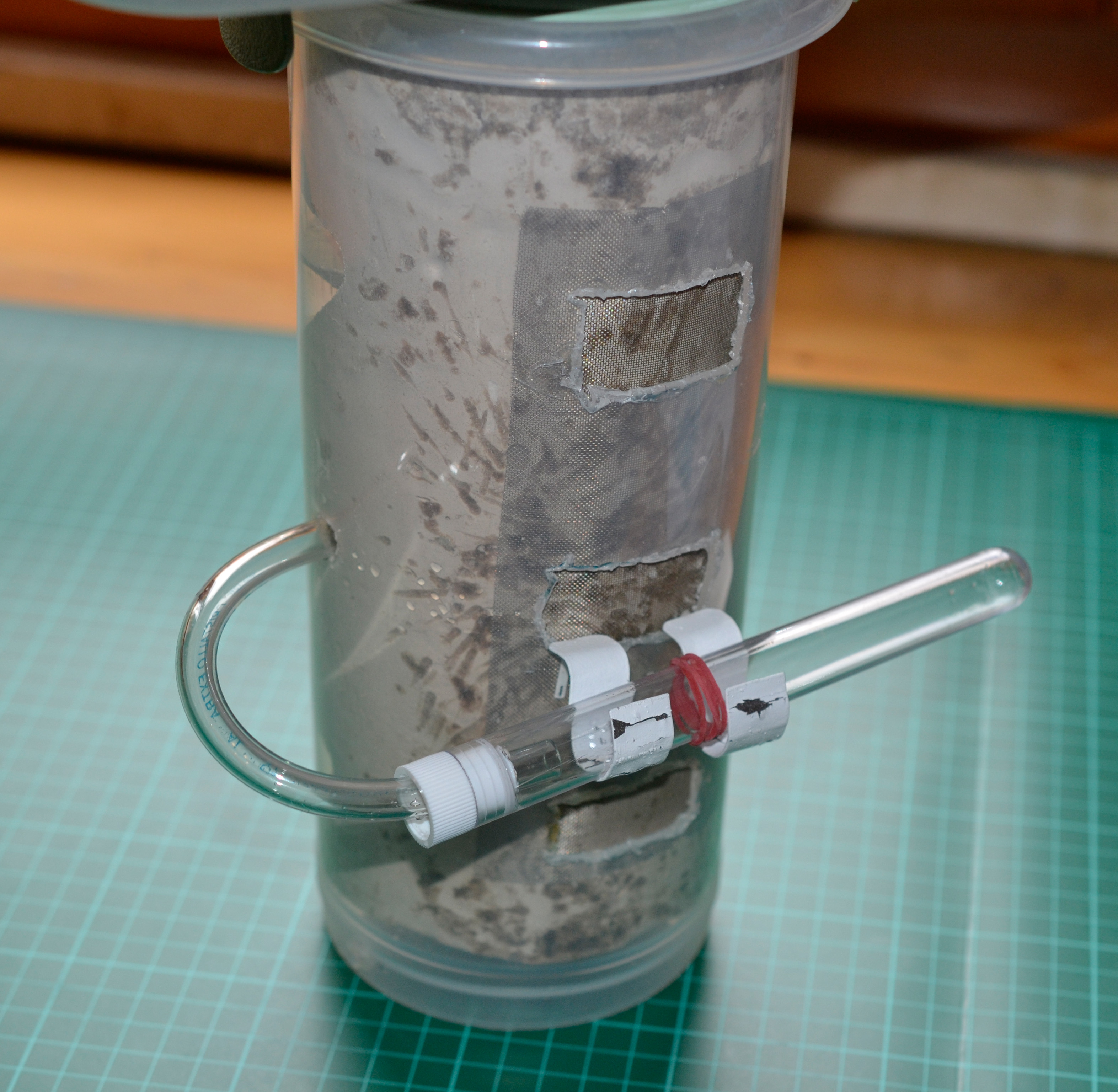 -Situazione muffa: la muffa che era comparsa vicino alla camera interna (per umidificare) sembrerebbe essersi fermata, tant'è che ora la maggior parte delle larve viene accudita proprio in prossimità di questo 'serbatoio interno'.