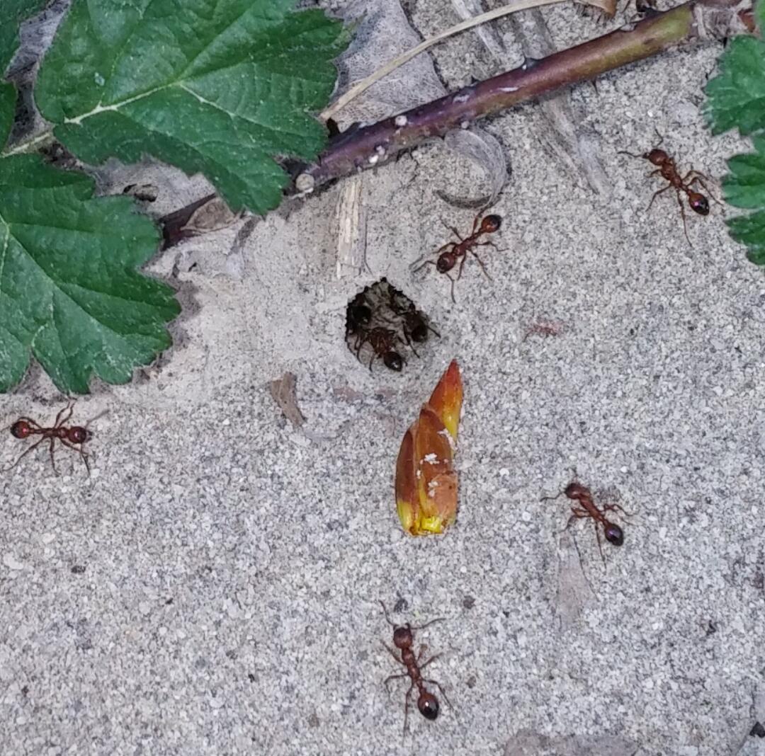 Non posso ancora crederci, mi stavo facendo una camminata verso le 18 di sera per il Fiume Tagliamento, nei pressi di Dignano, a circa 70 80 metri dal livello del mare quando mi accorgo di uno strano movimento per terra! Osservo attentamente avvicinandomi e vedo formiche rosse di una stazza mostruosa uscire da un buco! Appena sono alla distanza giusta mi accorgo immediatamente che era una colonia di Manica rubida! La colonia era molto grande, il formicaio aveva molte uscite e solo attorno al formicaio cerano più di un centinaio di operaie sparse! Operaie di una stazza mostruosa grandi come la mia regina che ho in fondazione! Ho intravisto persino un alato sbucare fiori con la testa dal buco! Quindi la colonia ha già qualche anno! Le ho osservate attentamente e alcune operaie si trovavano anche a una trentina di metri dal nido! Come è possibile che questa specie si sia spinta cosí in basso se dovrebbe essere una specie di montagna?