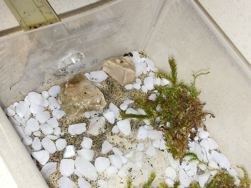 Durante questa lunga fondazione ho provato numerose adozioni, dall'inizio ho inserito una regina della stressa specie, che però è stata cacciata, poi ho provato ad offrire larve e uova di Lasius e Temnothorax, ho provato anche con bozzoli di Formica cunicularia, si sono dimostrati tentativi falliti, tranne uno,ho infatti fornito alle due regine alcune larve e uova prese dal loro stesso "ex formicaio" e sono state accettate, purtroppo come di consueto, se le sono mangiate una settimana dopo, pare quasi che gli piaccia mangiare le uova e le larve, anche se sono le loro