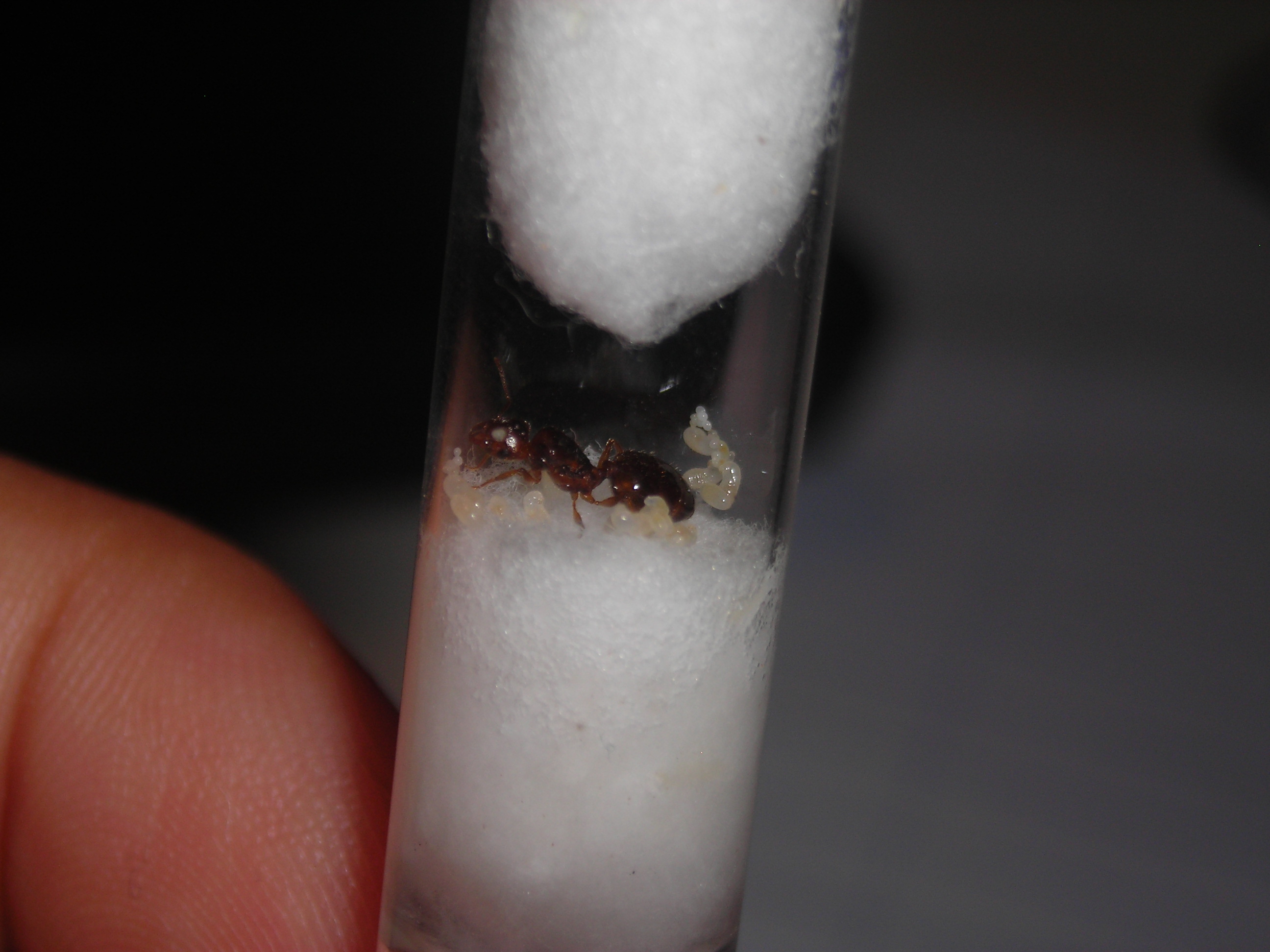 Oggi si sono sviluppate tutte le larve della covata è alla pari con la mia Tetramorium vediamo chi vince