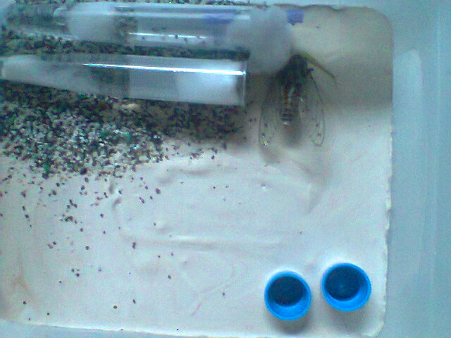 Hanno già una covata molto bella (colonia Beta,2 pupe,10 larve,una ventina di uova ed 11 operaie; colonia Alpha,8 operaie,15 uova,3 pupe,tante larve!