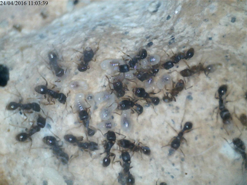 Entrambe le colonie di Tetramorium si sono sviluppate dalla fine dell'ibernazione: la colonia Alpha (che ha avuto una perdita di operaie) ha deposto circa 200 uova ed è stata trasferita nel nuovo nido, di cui farò le foto appena possibile