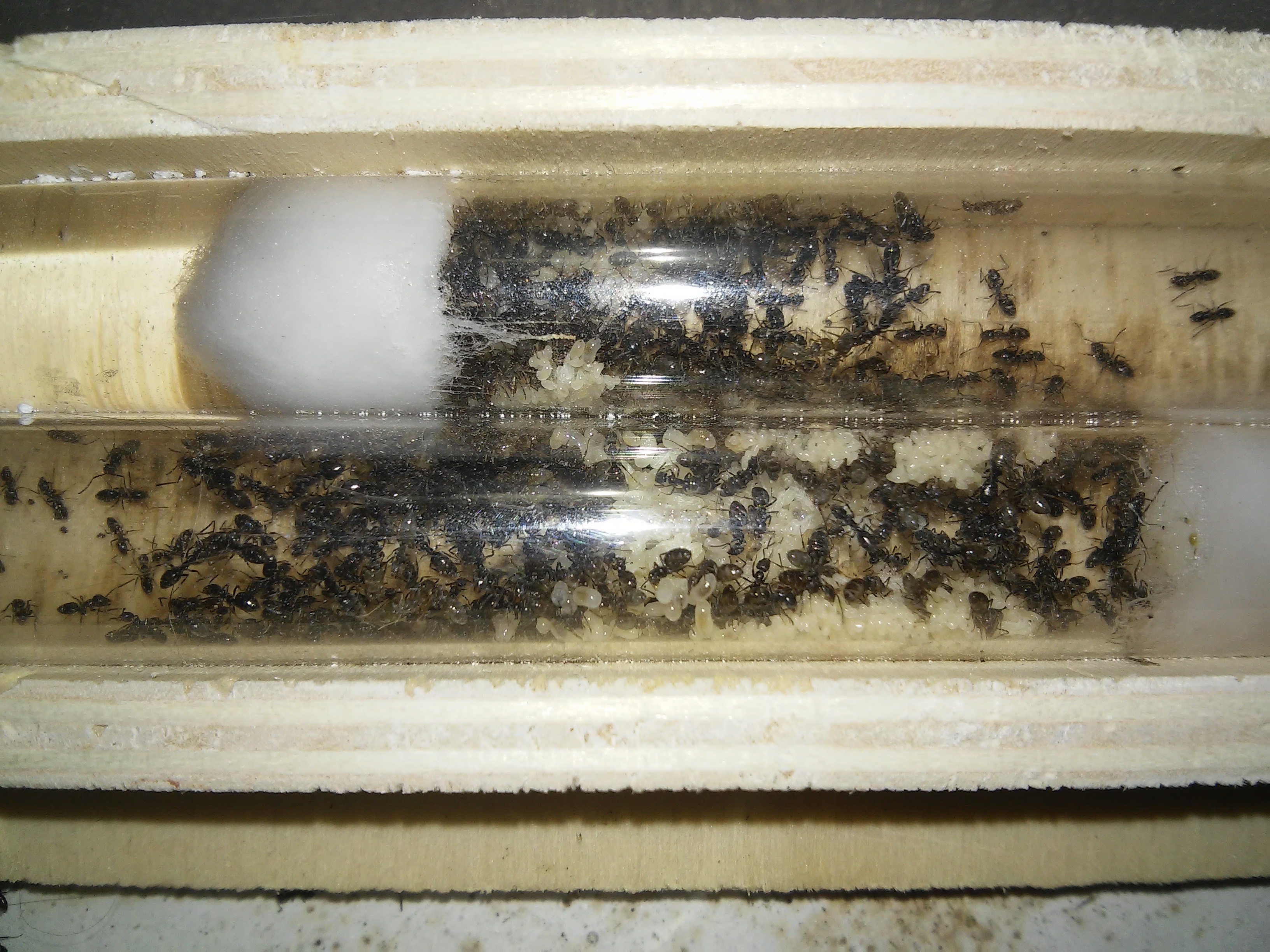 Nel frattempo, una provetta sta per finire e non intendo sostituirla. Spero che si trasferiscano nel nuovo nido che ho messo in arena, ma la vedo dura... per il momento lo hanno usato (da fuori) come solarium