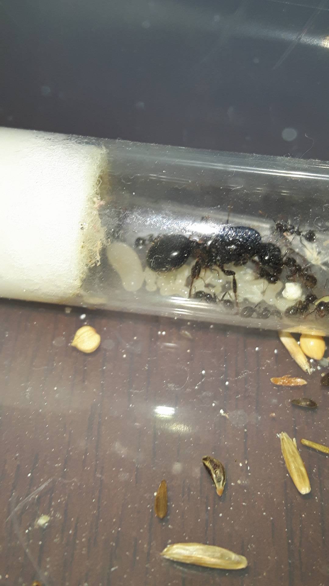 Buongiorno a tutti, ho appena effettuato il controllo di tutte le mie colonie ed ho ritrovato una larvona enorme nelle mie Messor capitatus, la colonia conta una trentina d'operaie + 2 medie, possibile una larva così grossa ? Potrà diventare la prima Major ??