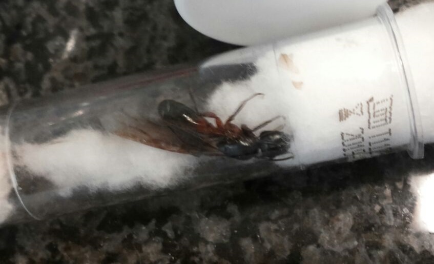 La regina presenta una colorazione nera-rossastra-nera e a occhio è lunga almeno un paio di centimetri (anche qualcosina di più)
