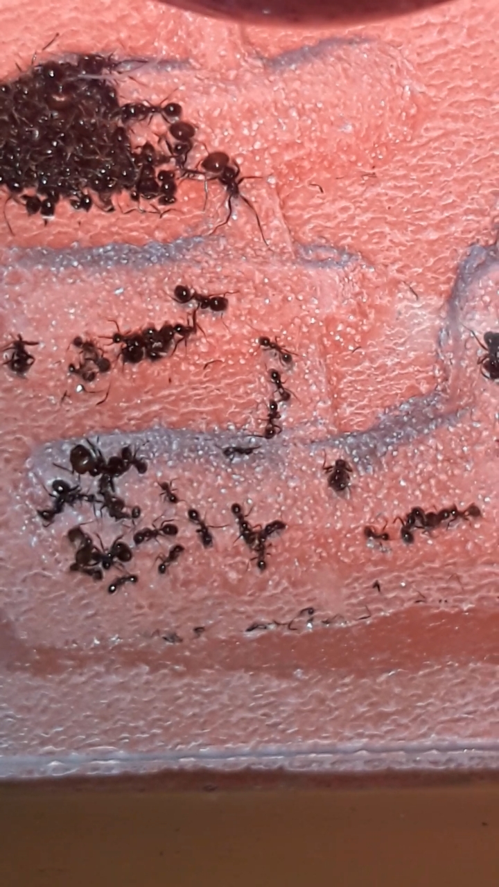 La colonia dovrebbe essere sulle 250 operaie,al momento ce ne saranno una trentina morte,non riesco a capire se tutte senza gastro,ma vive w mutilate ne ho viate almeno 4