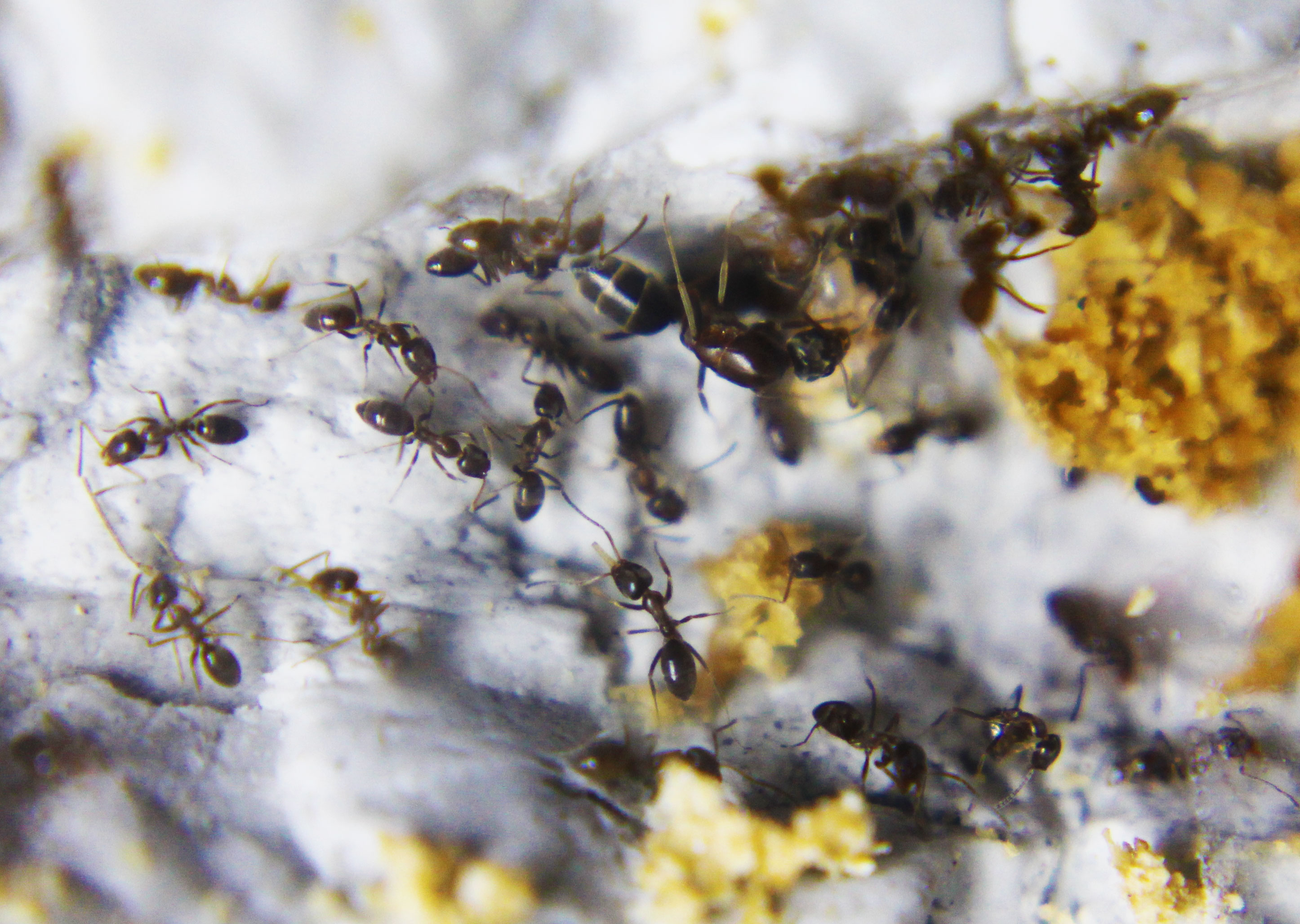 Ho tentato più volte aggiungendo delle varianti, qualche operaia in provetta, eliminando la provetta e provando a creare un formicaio a lastre prelevando il substrato in cui vivono abitualmente, pare che l'unico loro pensiero fosse la fuga, a volte ci riuscivano, altre perivano nel tentativo...