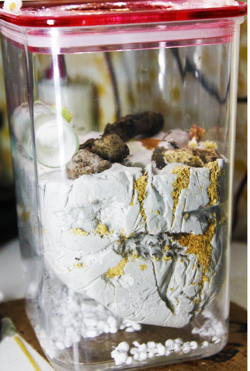 Verso la terza settimana di maggio comincio a notare dei decessi (alcuni dovuti a tentativi di fuga e quindi agli effetti dell'olio minerale) ma poi mi accorgo dell'insorgenza di alcune muffe che stanno prendendo largo nel formicaio stesso, quindi decido di crearne uno nuovo in gesso (che descriverò più avanti) e una volta finito do via al trasferimento. (Siamo ormai a Giugno)