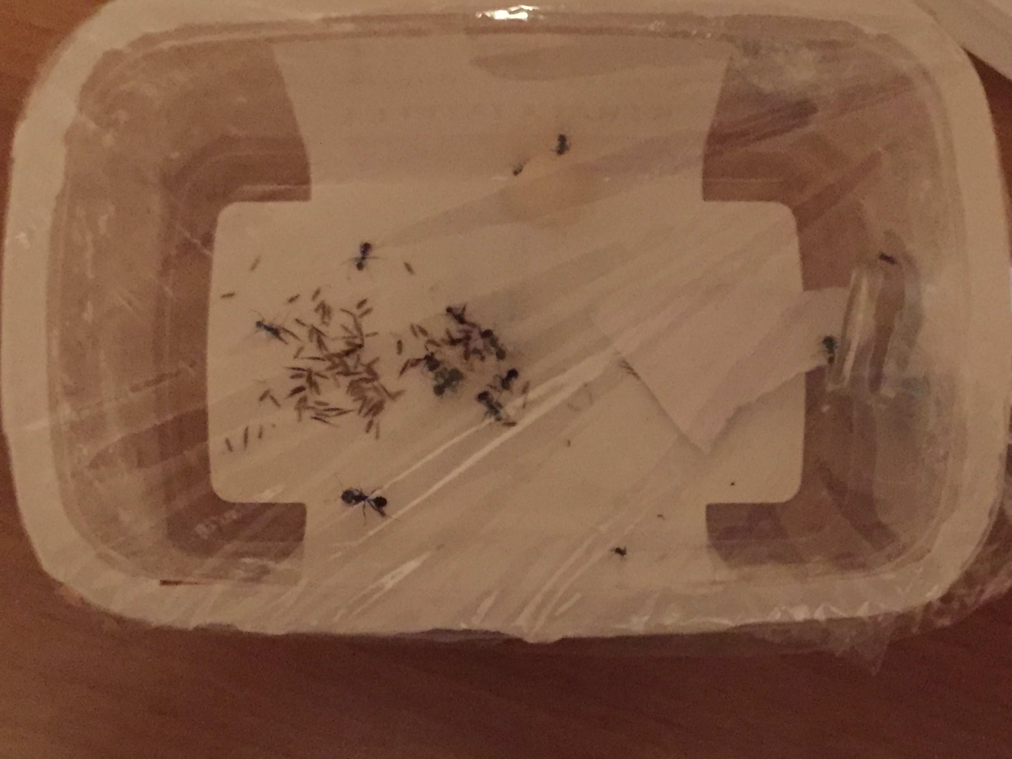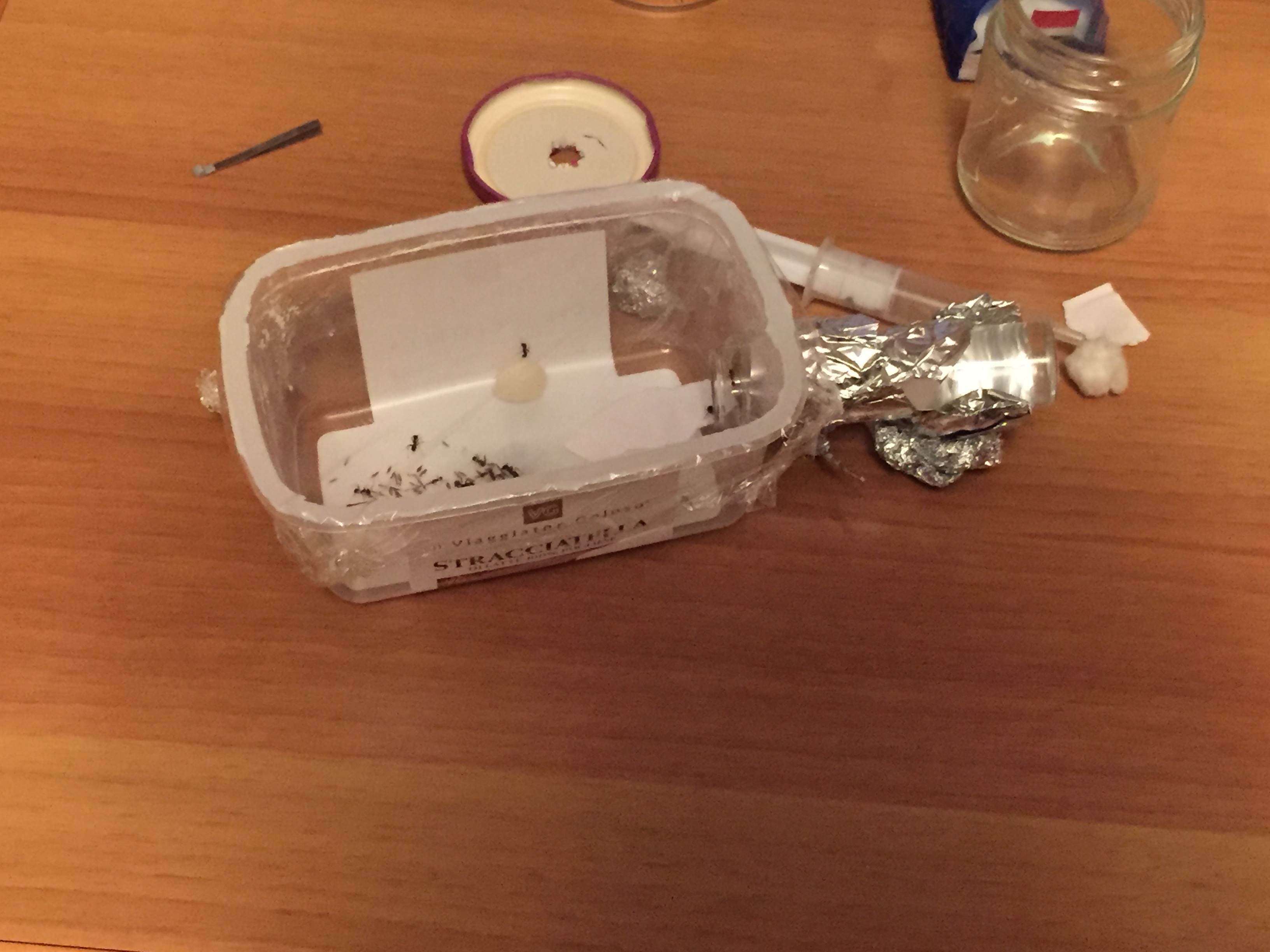 Vi informo con estremo piacere che la mia "colonietta" è stata trasferita con successo in una provetta con arena annessa. Ho eseguito anche il trattamento con il limone a tutte le operaie. Regina inclusa!