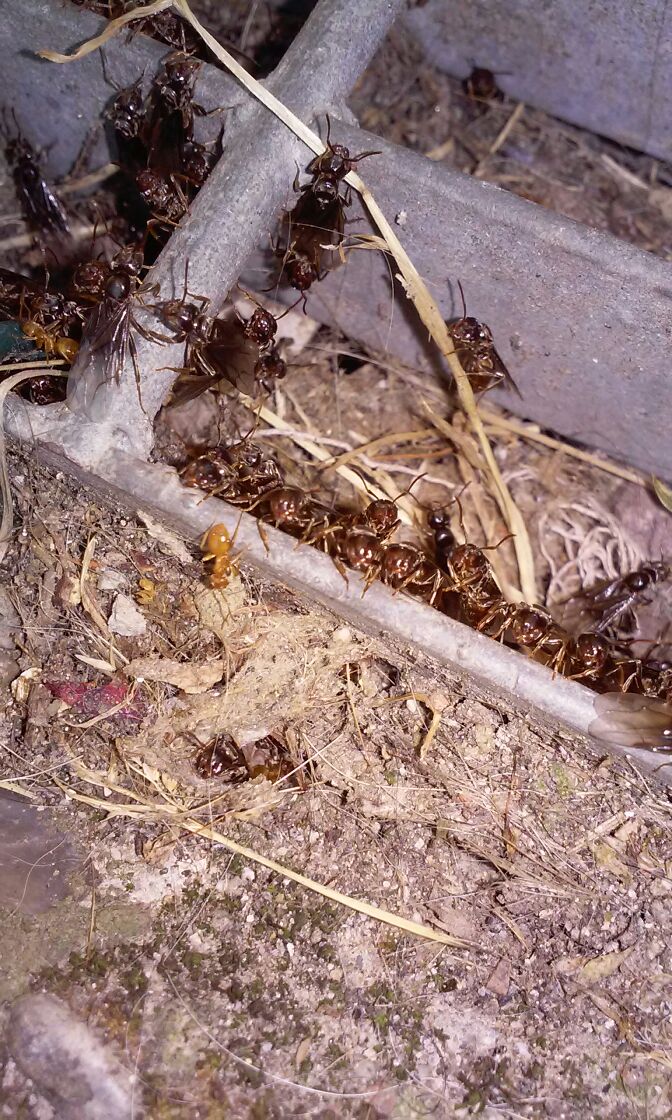 Ho anche pensato possano essere state fecondate nel pozzetto di cemento dentro il quale hanno il formicaio,sopra c é dello spazio ,circa 40cm e poi il buco da dove escono.