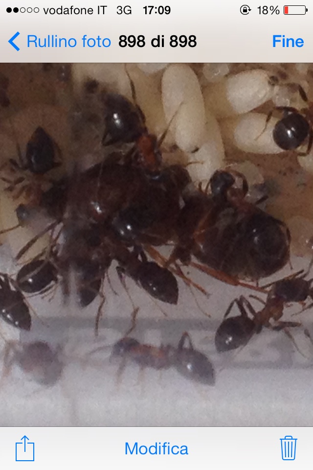 A malincuore nel muovere il tubo che collega provetta e arena l'ho schiacciato e credo ci fosse proprio la regina in quel punto. Credo di avergli schiacciato l'addome ed è uscito anche in po di liquido...