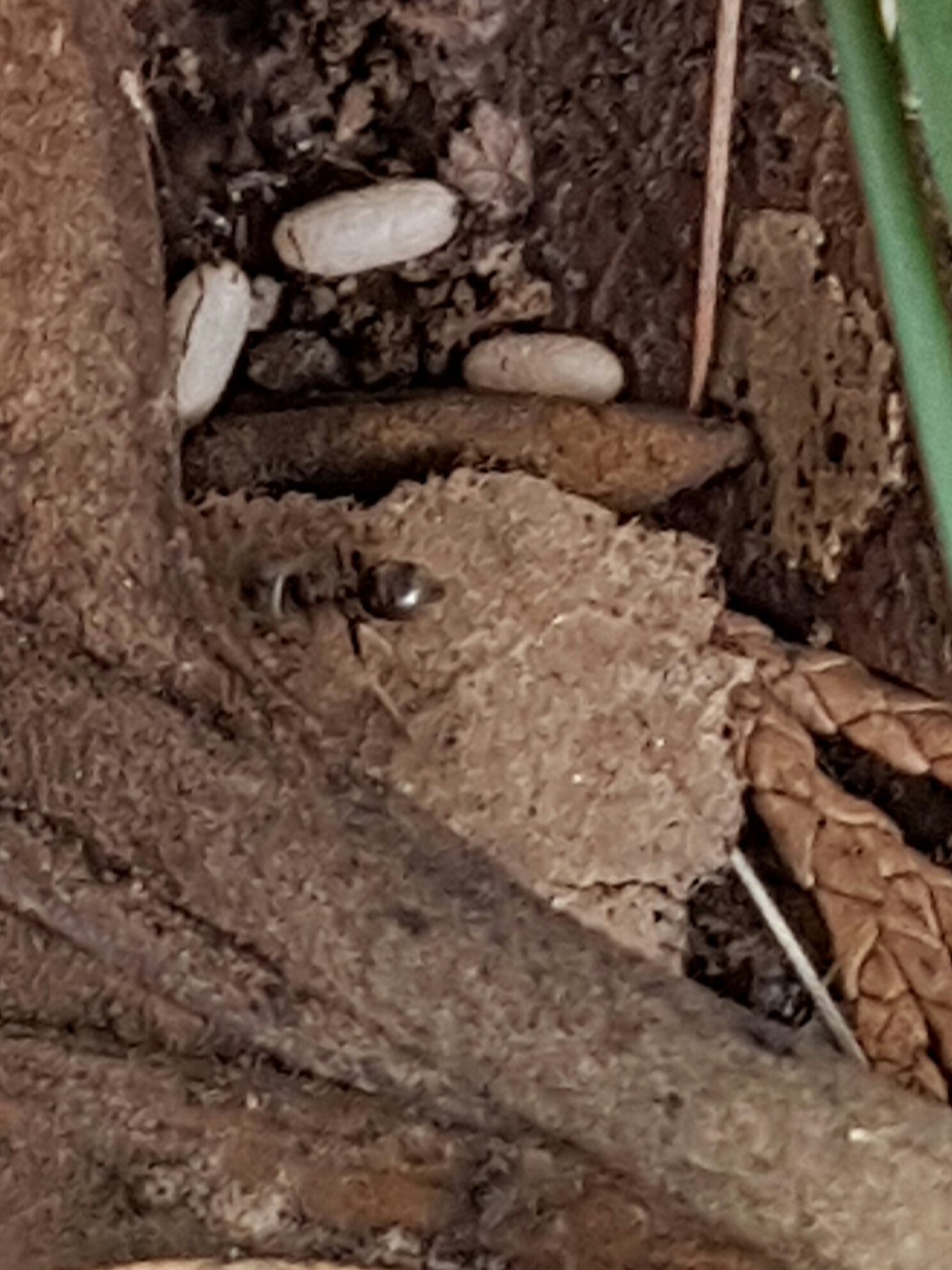 Purtroppo non saprei dove metterle in sicurezza in giardino. Se riesco vedo di fare delle foto alle operaie. Un altro problema è che il nido è un bamboo di circa 2 mt di lunghezza