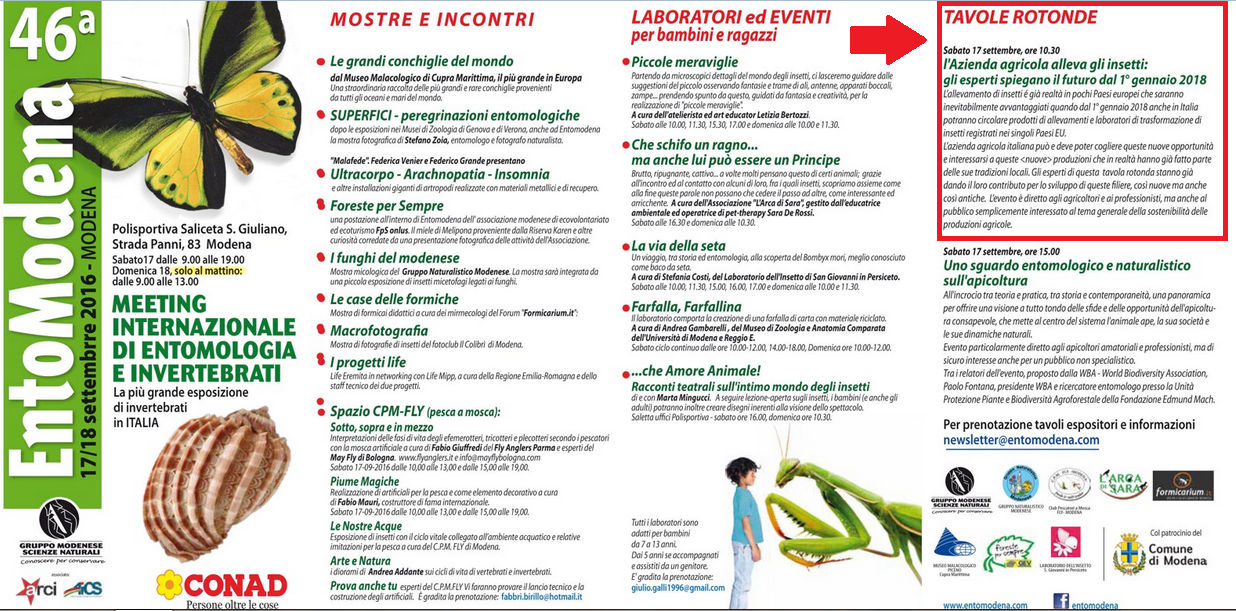 Poi ad ogni edizione c'è sempre il tavolo dell' ENTOMOFAGIA e chi vuole può provare gratuitamente. Sulla locandina non lo leggo stavolta, ma suppongo che ci sia come sempre.