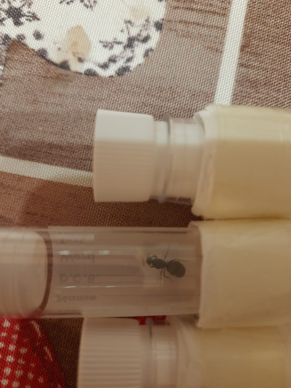 Beh nn sono chiare le foto ma a me pare di scorgere alcune larve ma può essere un effetto della foto, comunque dipende dalla temperatura, nei periodi più caldi mi è capitato anche di vedere passare da uovo a larva in circa 5 giorni.. una curiosità, ma perché le tieni con il tappo della provetta e non con il cotone? Comunque si sono Lasius sp.