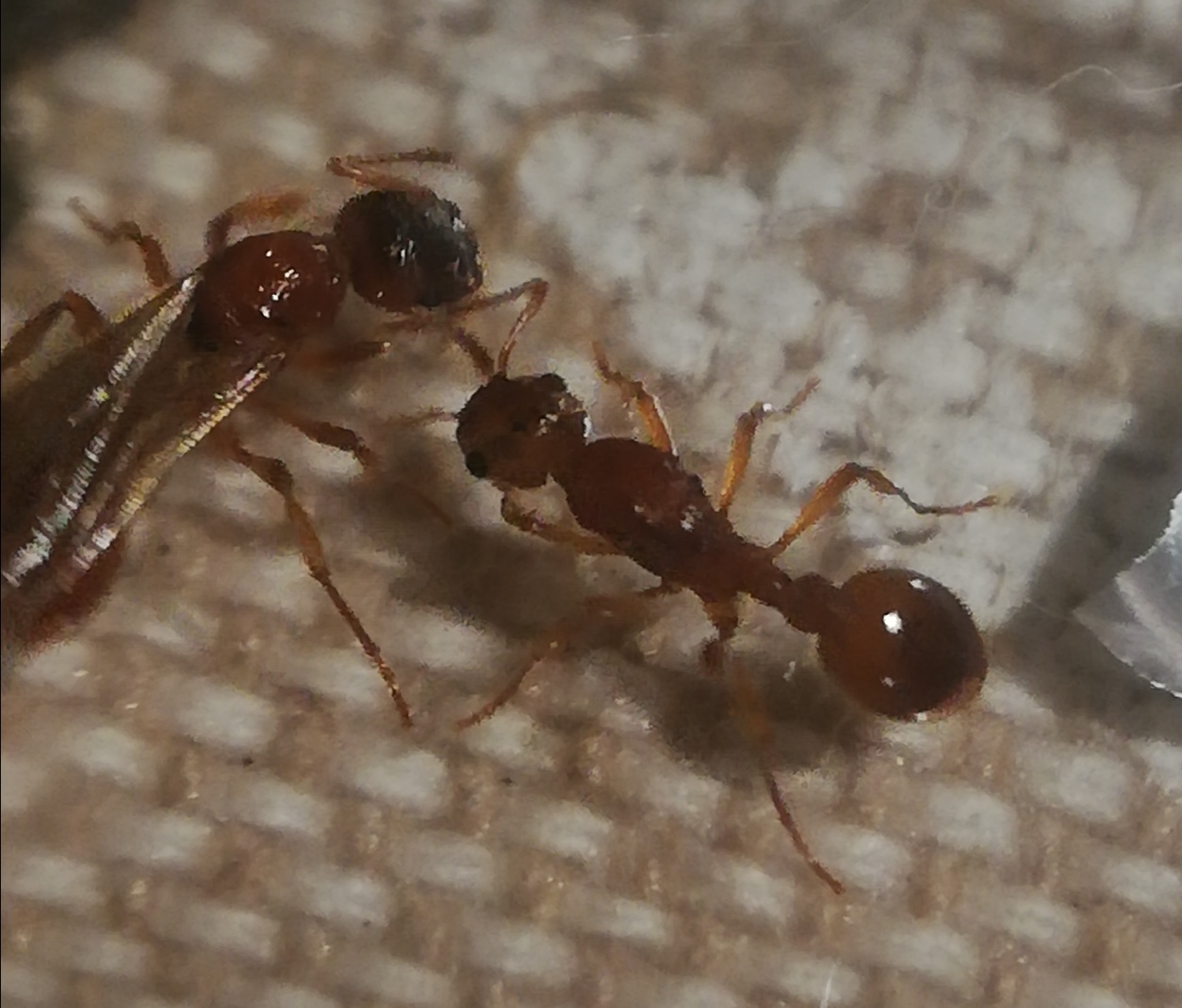 Allora col fatto che appena si sono viste hanno fatto letteralmente una trofallassi e si sono pulite per mezz'ora concluderei che siano conspecifiche, vediamo se l'alata si dealerà in futuro. Che dite provo ad aggiungere anche l'altra non-alata (identica) e vedere se con loro va d'accordo? Mi piacerebbe riunire la varie Myrmica in un unica colonia così da ottimizzare gli spazi in futuro e facilitare la fondazione.