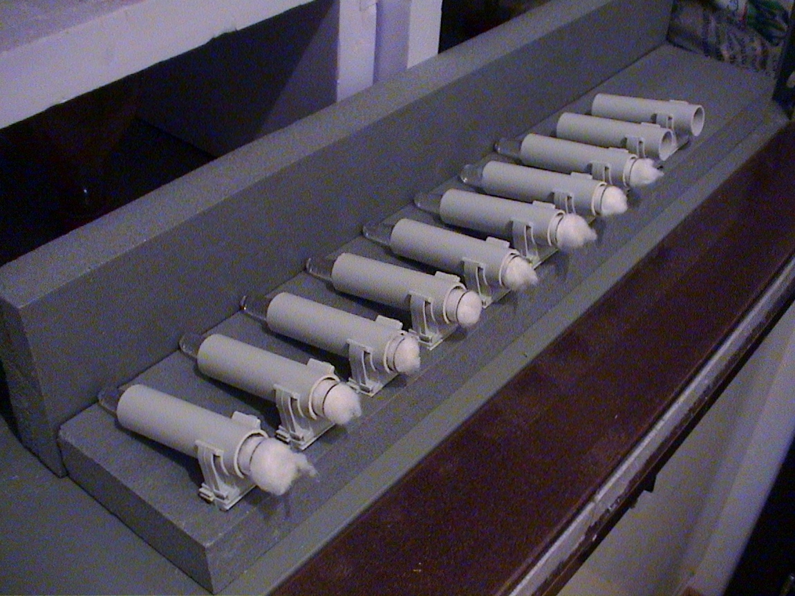 Come puoi vedere, con questo sistema le colonie sono tranquille, anche se entri nella stanza accendendo la luce non le disturbi affatto... riesci a controllare il serbatoio di acqua, che sia sempre pieno, senza necessità di maneggiare le provette... ed anche per alimentare devi semplicemente sfilare il tappo di cotone senza toccare la provetta ed evitare quindi che le operaie si allarmino ed inizino a muoversi rischiando di fuggire.