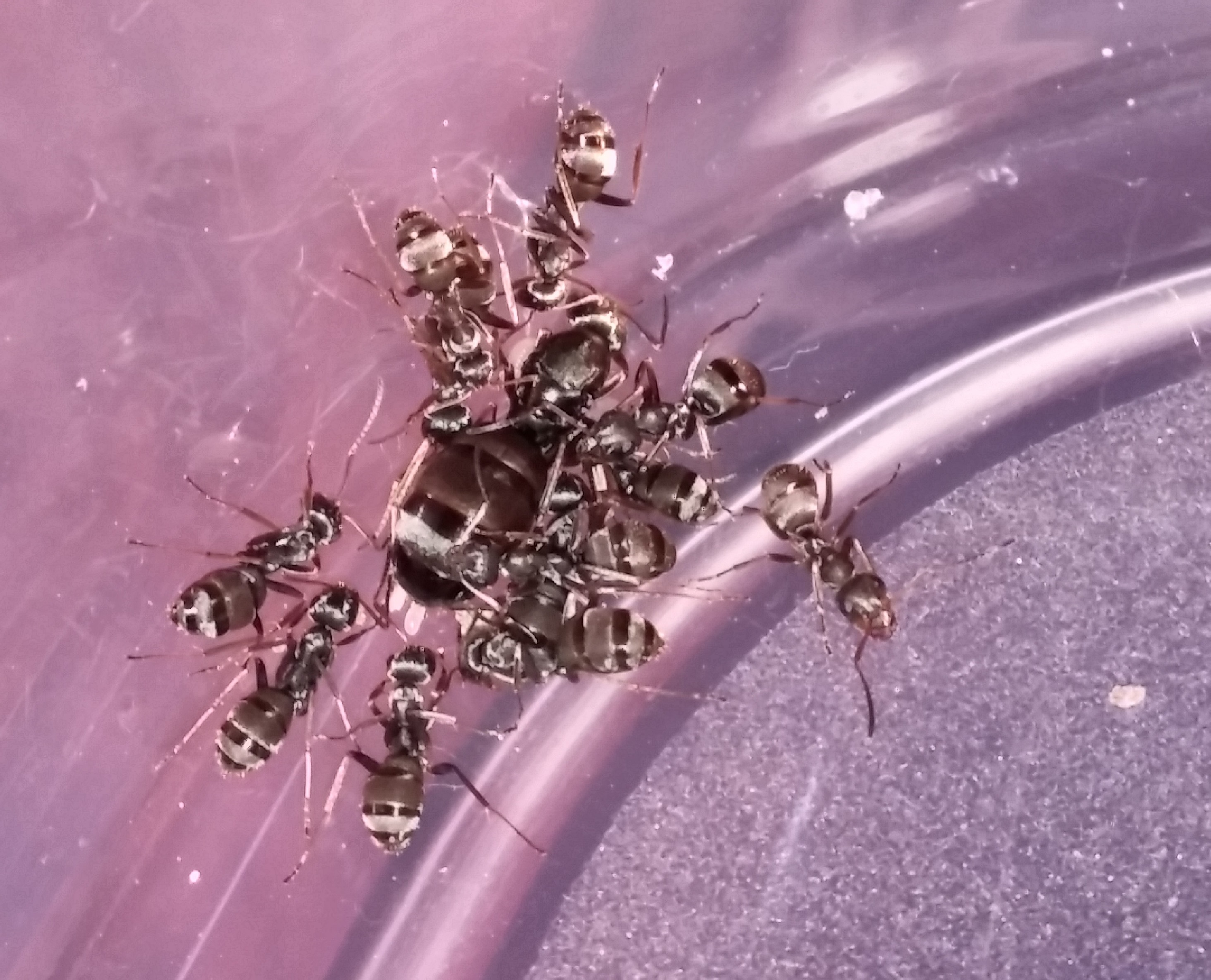 così ho spostato il tutto in una parte meno illuminata e la piccola colonia sembra tranquilla..ho contato circa 35 40 formiche, presuppongo che tra le formiche presenti nel legno e quelle che sono riuscito a prendere prima che si dileguassero, ci fossero sulle 200 formiche...quindi teoricamente è al secondo anno di vita..ho notato anche che le formiche si scarrozzano in giro pacchetti di uova che ad occhio e croce non sono molto lontane alla sessantina