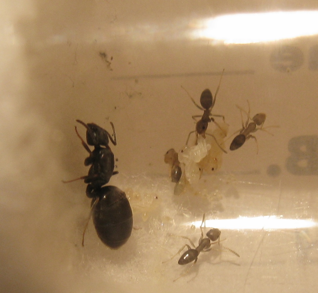 Dico erroneamente perché al controllo di ieri ho notato la presenza di pupe nude, mentre a regola le Formicinae dovrebbero fare il bozzolo.