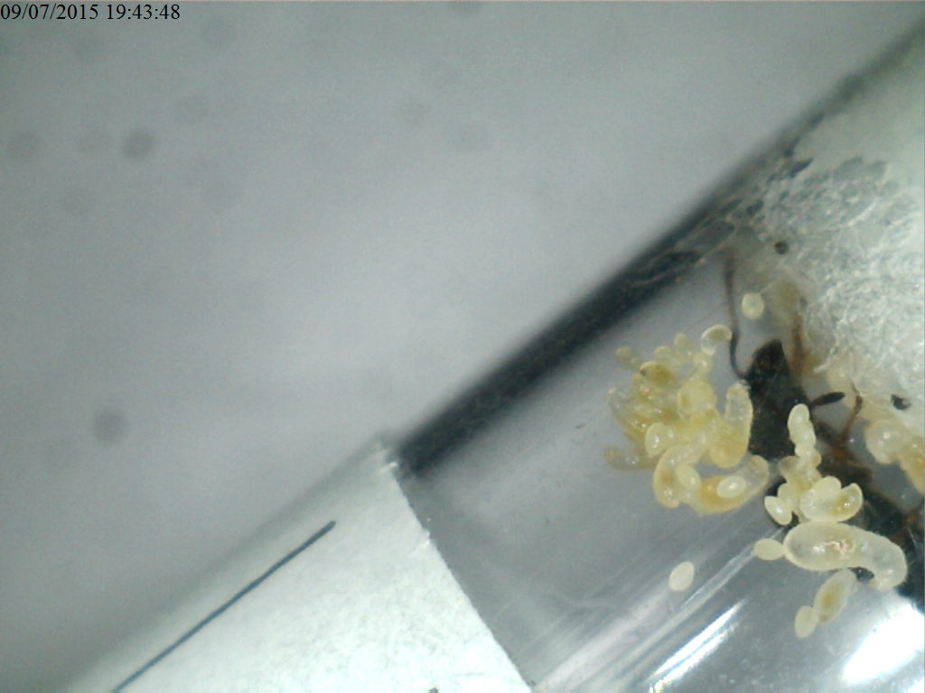 Quando inizi a vederle un po' più giallognole, significa che si stanno per schiudere o sono già larve! Conta che la colonia numero uno l'ho trovata circa il 28 giugno (quindi 11 giorni fa, cioè pochissimi rispetto ad altre formiche!