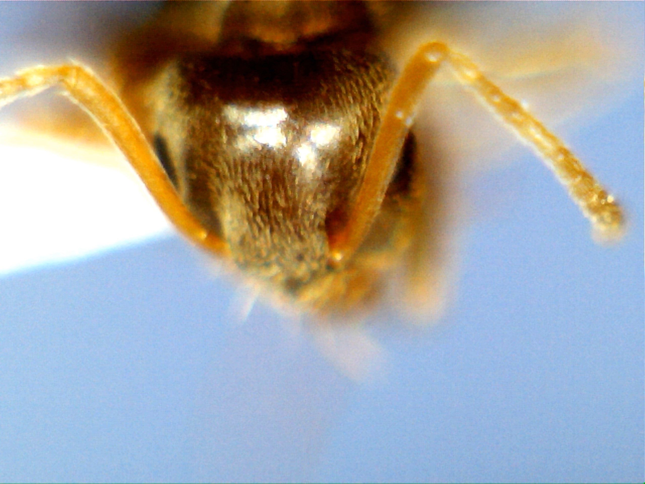 Il gruppo è quello (nell'ultima immagine si nota abbastanza bene) e direi pure la specie dato che il propodeo mi pare molto glabro (te con calma riesci a trovare qualche pelo sotto la ghiandola?) solo vedo che le immagini sono molto smangiate sembrerebbe da una pulizia del rumore. Non so se hai qualche controllo dei parametri di esposizione di quelli che dicevo prima per migliorare un poco la qualità d'immagine, ma immagino sia uno strumento molto automatico e che ci dobbiamo accontentare.