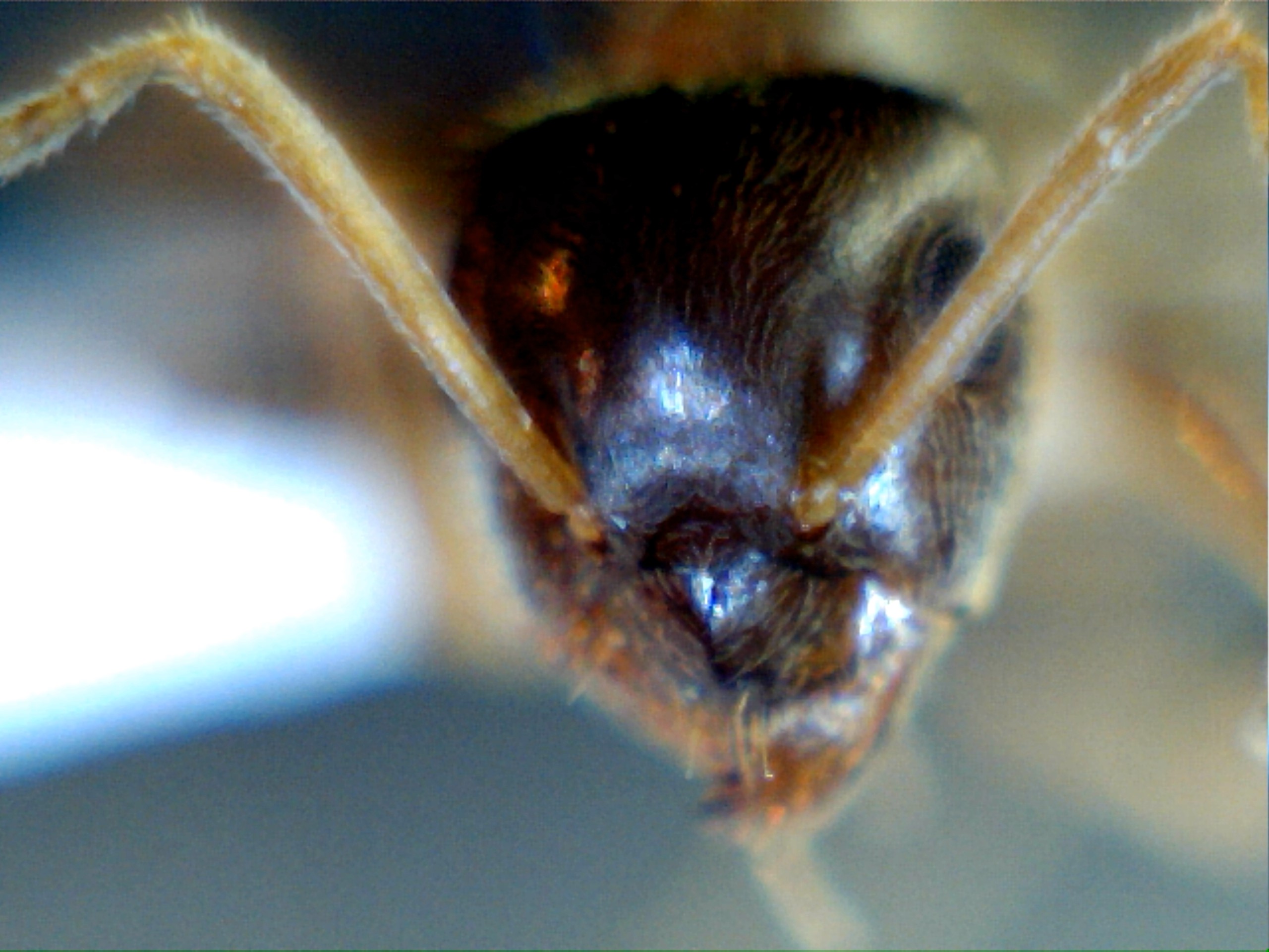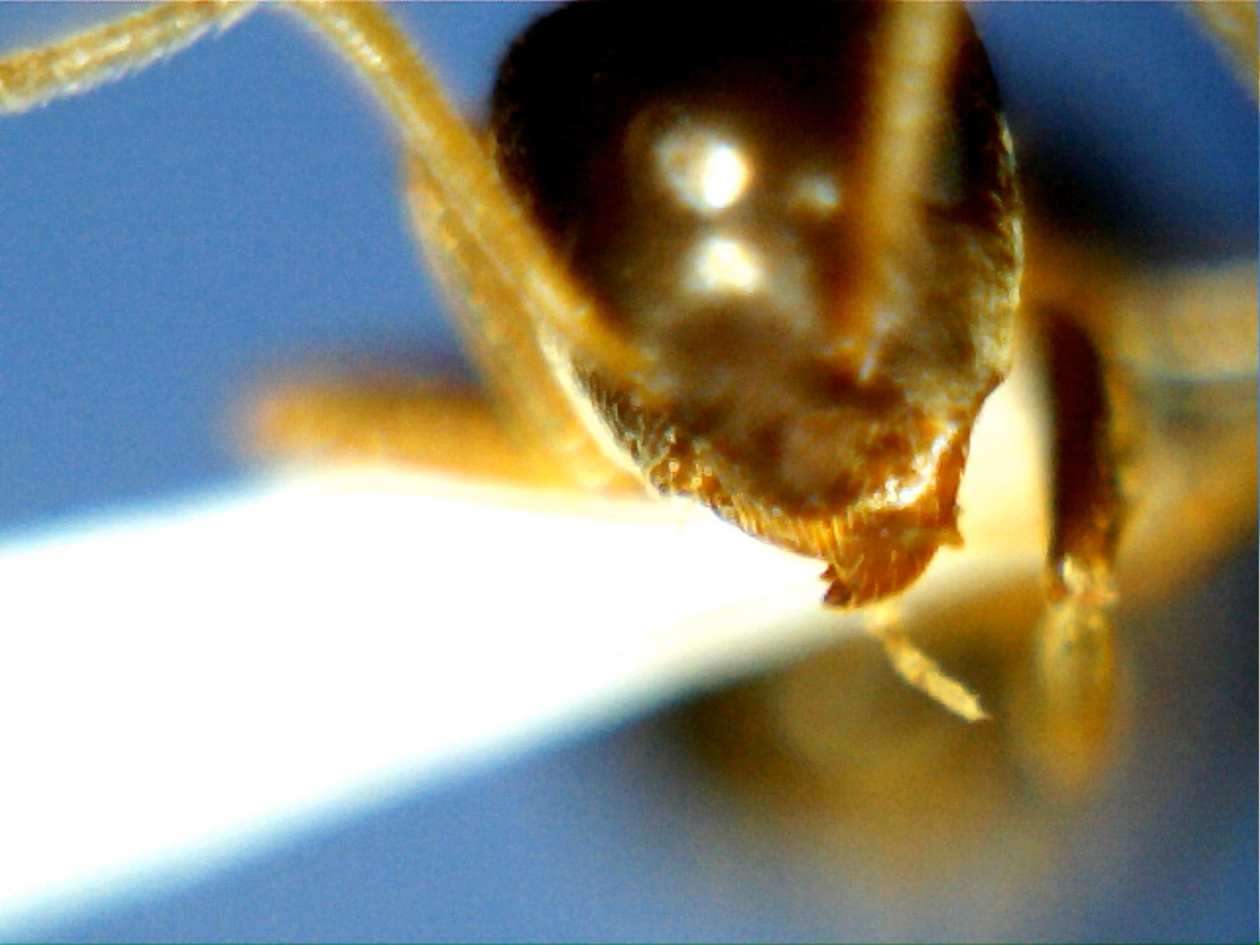 Col microscopio usb non li vedo... Non vi dico come ho modificato il mio microscopio da microbiologia per poter osservare questa formica.