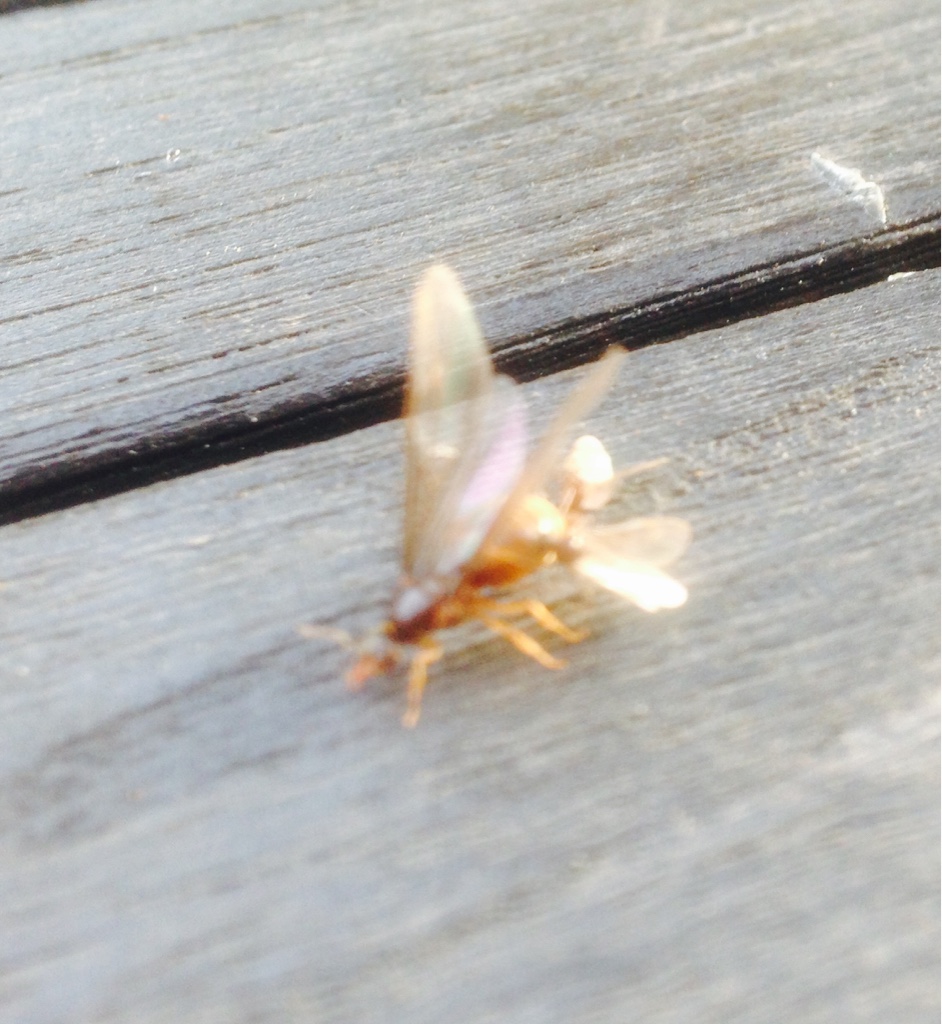 La foto è orribile ma è stato difficile farla. Si è posata 30 secondi sul tavolo davanti a me e poi è svolazzata via, con due maschi abbarbicati all'addome.