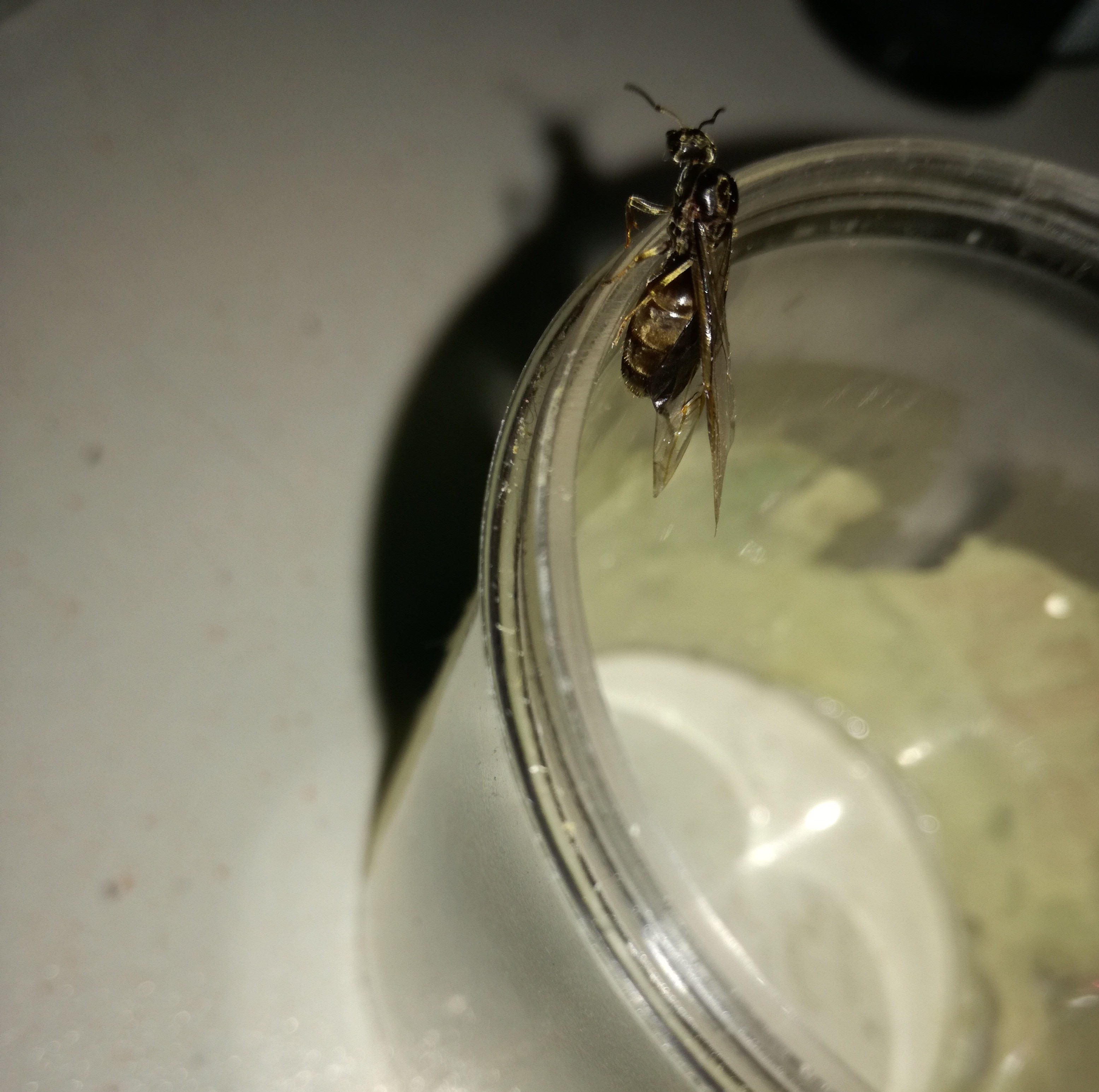 note:ha ancora le ali, inoltre il torace (la parte posteriore insomma) e' più largo e leggermente più lungo rispetto a come era durante il ritrovamento.