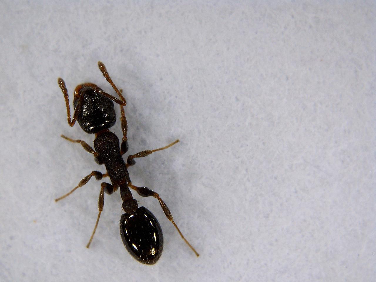 Temnothorax sp.. Da come descrivi il ritrovamento, dall'ambiente e dall'habitus possibilmente T. angustulus. Occorrerebbero foto dettagliate dell'esemplare di profilo (o meglio, avere direttamente l'esemplare) per confermare la specie.
