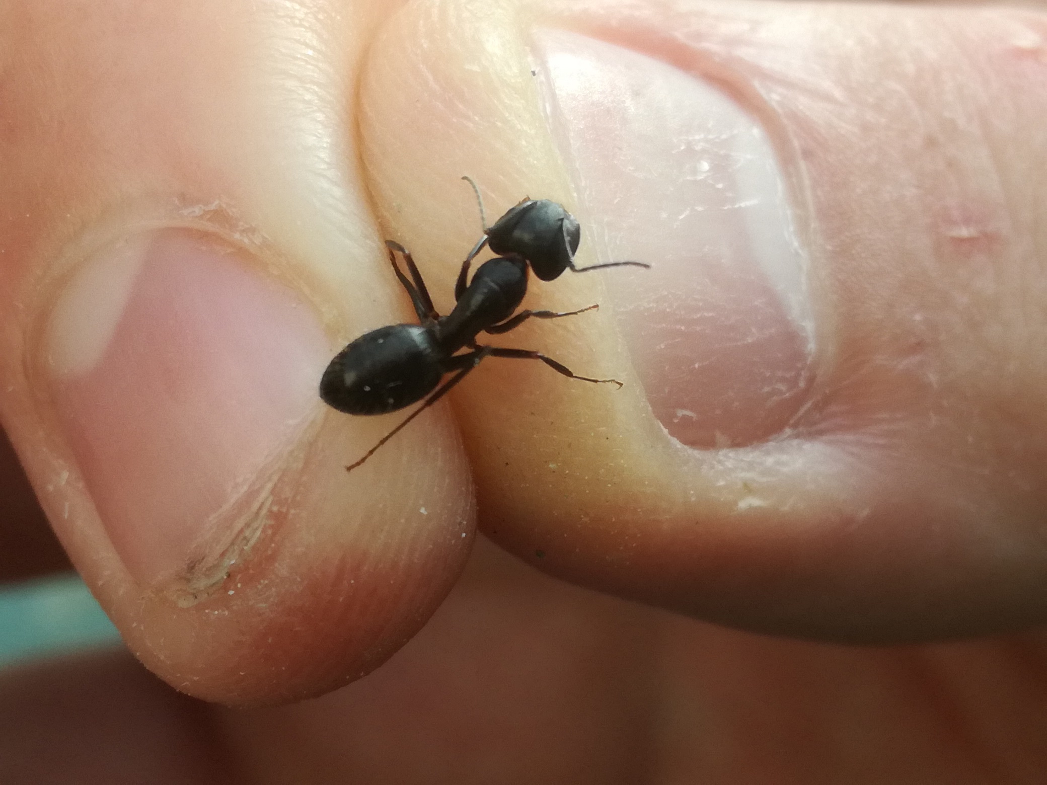 Nell' insenatura rocciosa fra un terrazzamento ed un altro ho trovato un nido di una specie di Camponotus mai incontrata prima, di forma piu' minuta, aggressiva e di colore nero lucido (ved. descrizione). Di seguito riporto alcune foto scattate con il cellulare, perdonate la bassa qualita'.