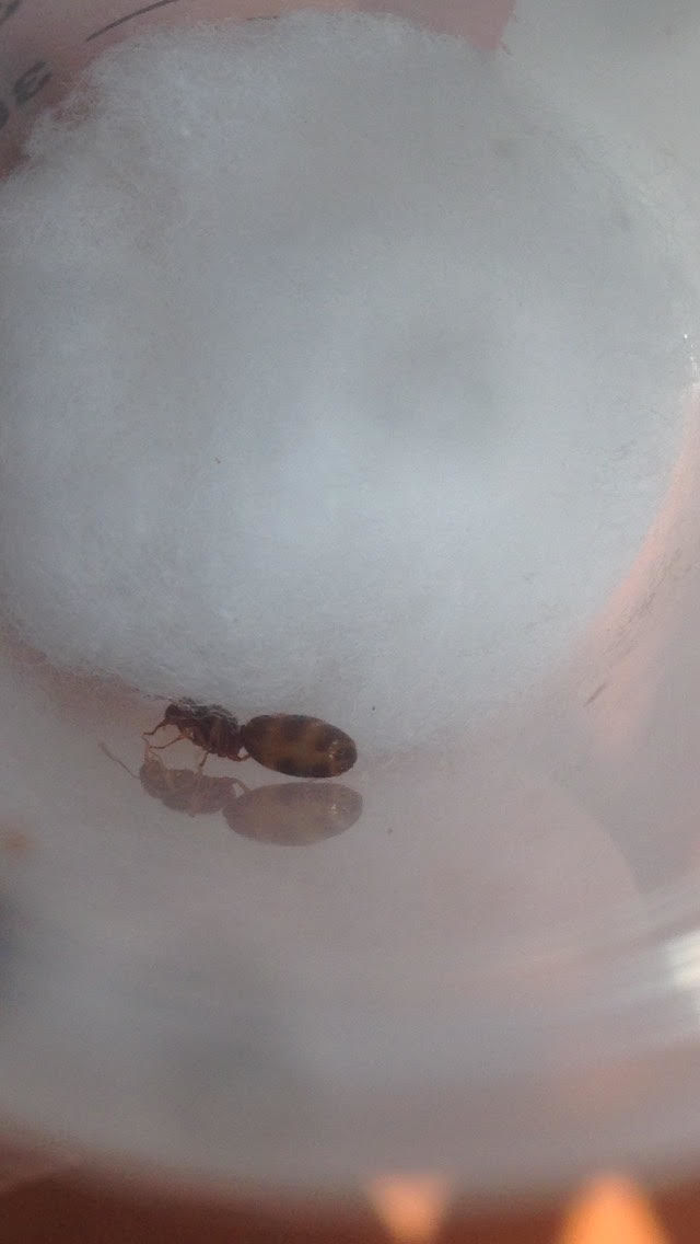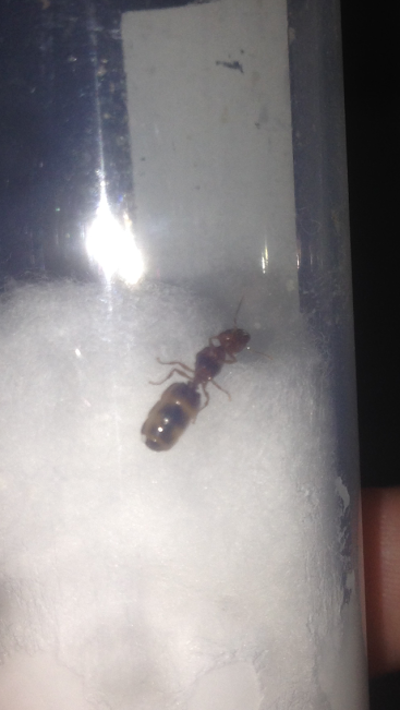 Pheidole pallidula , ha il gastro bello gonfio, se la lasci al buio dentro un cassetto entro domattina potrebbe aver già deposto.