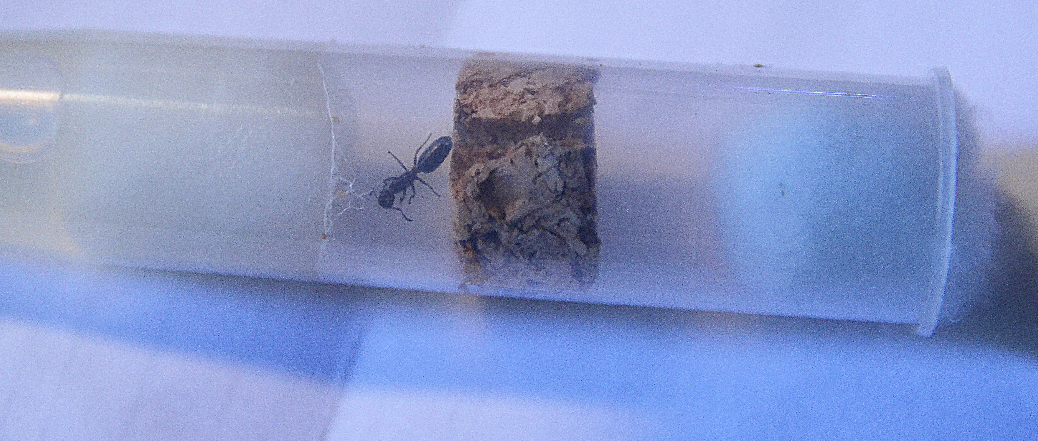 AntBully ha scritto:è una specie facilmente stressabile. Il problema non è tanto la luce, ma secondo me il nido per lei non va bene. Io ti consiglio un cerchio di sughero in cui praticherai un piccolissimo foro di 2/3 mm, per far passare la regina (non farti ingannare dalla lunghezza, entrano anche in buchi più piccoli). Dopodiché incastrerai il cerchio all'interno della provetta. Io ne sto facendo fondare 5 così, e non soffrono. Le uova non le depongono subito, dovrai aspettare un altro po'.