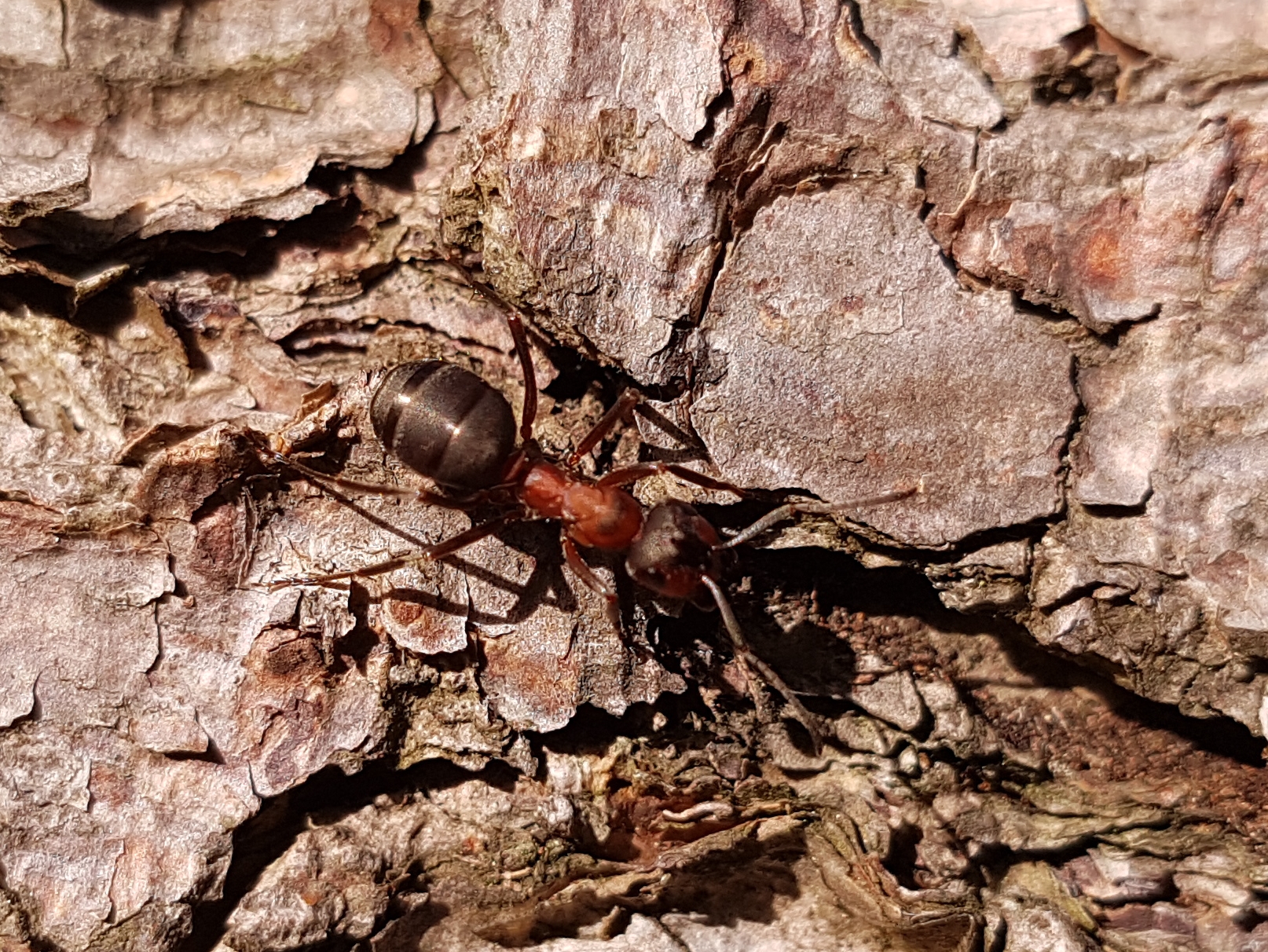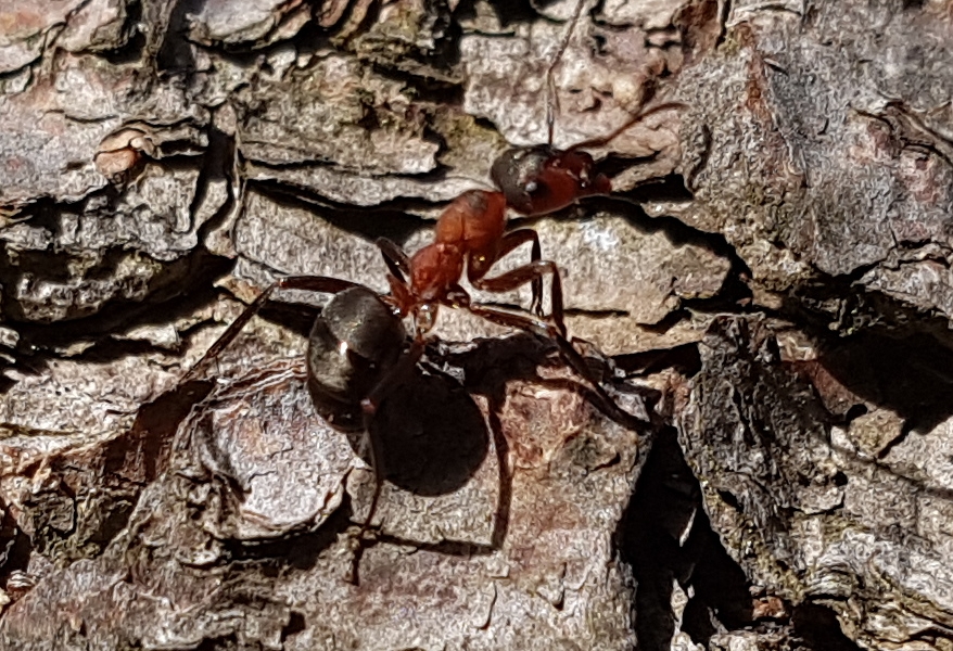 le seconde sono Formica del gruppo rufa , escludo Formica sanguinea dalla assenza di Incisione sul Clipeo, caratteristico di quest'ultima, è molto probabilmente Formica rufa, ma non sono esperto a iddare questo gruppo