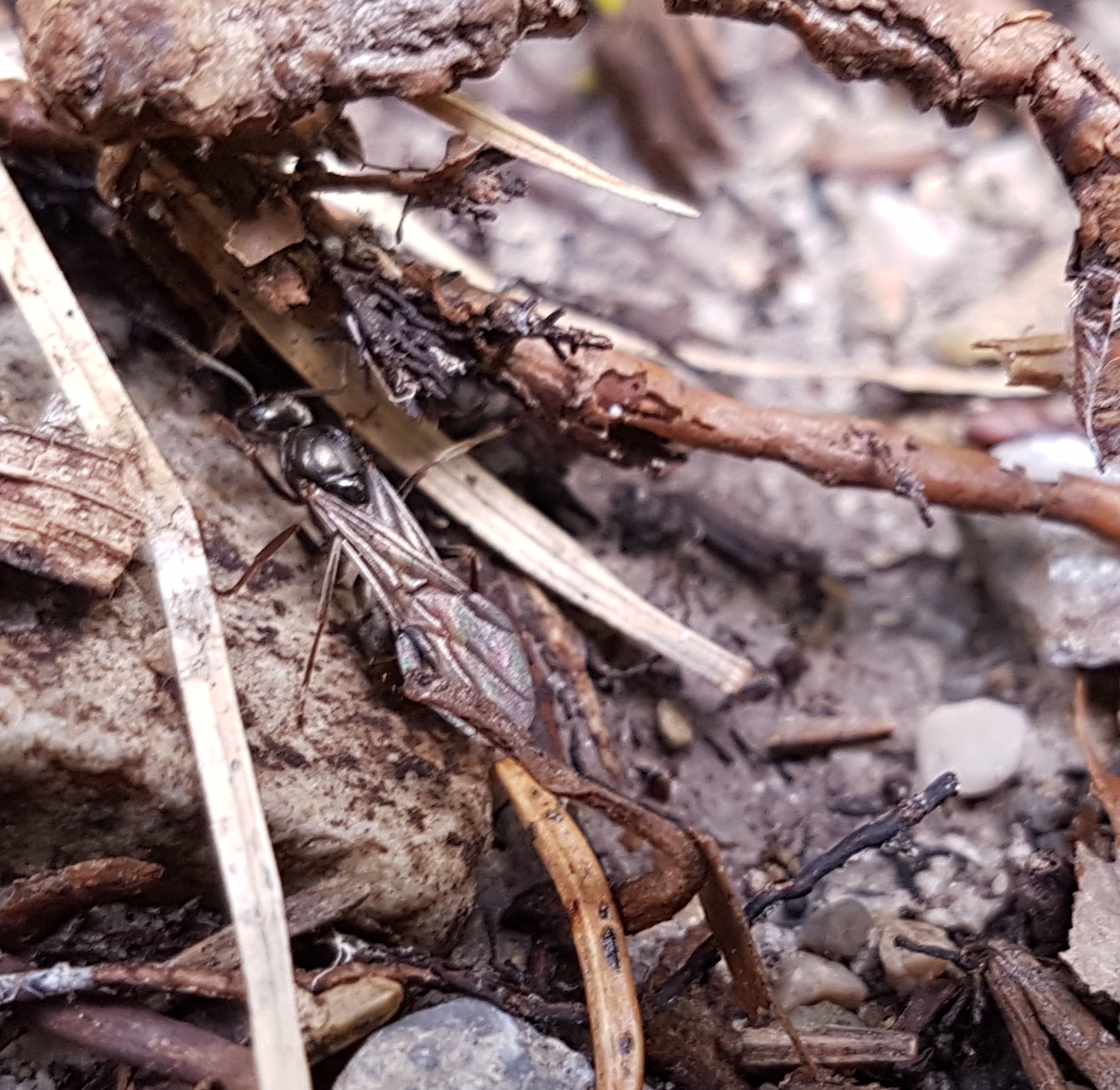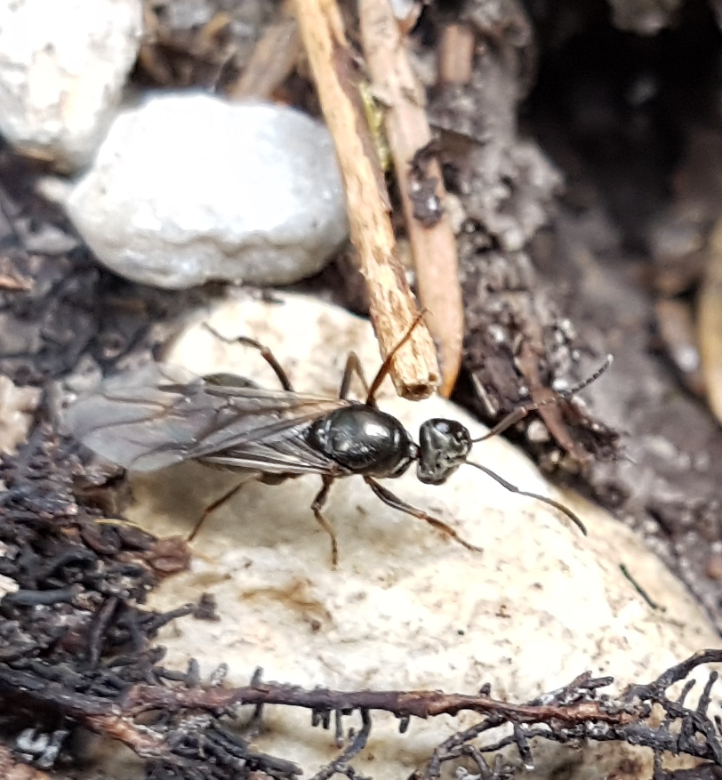 1) Un nido con regine in attesa della sciamatura... molto probabilmente Lasius niger (ho trovato anche altri nidi nella zona). Me lo confermate?