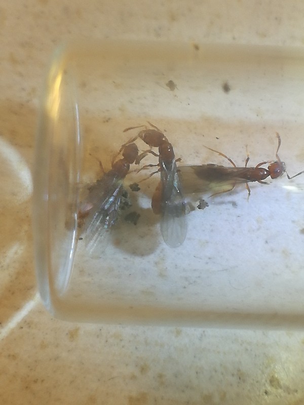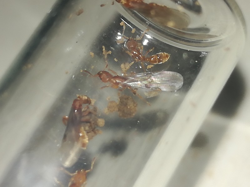 La mia fortuna continua haha, ho trovato numerose regine di Cryptopone ochracea con tre maschi e un'operaia, in più ho scoperto il nido e visto operaie foraggiare ma non sono riuscito a prenderle
