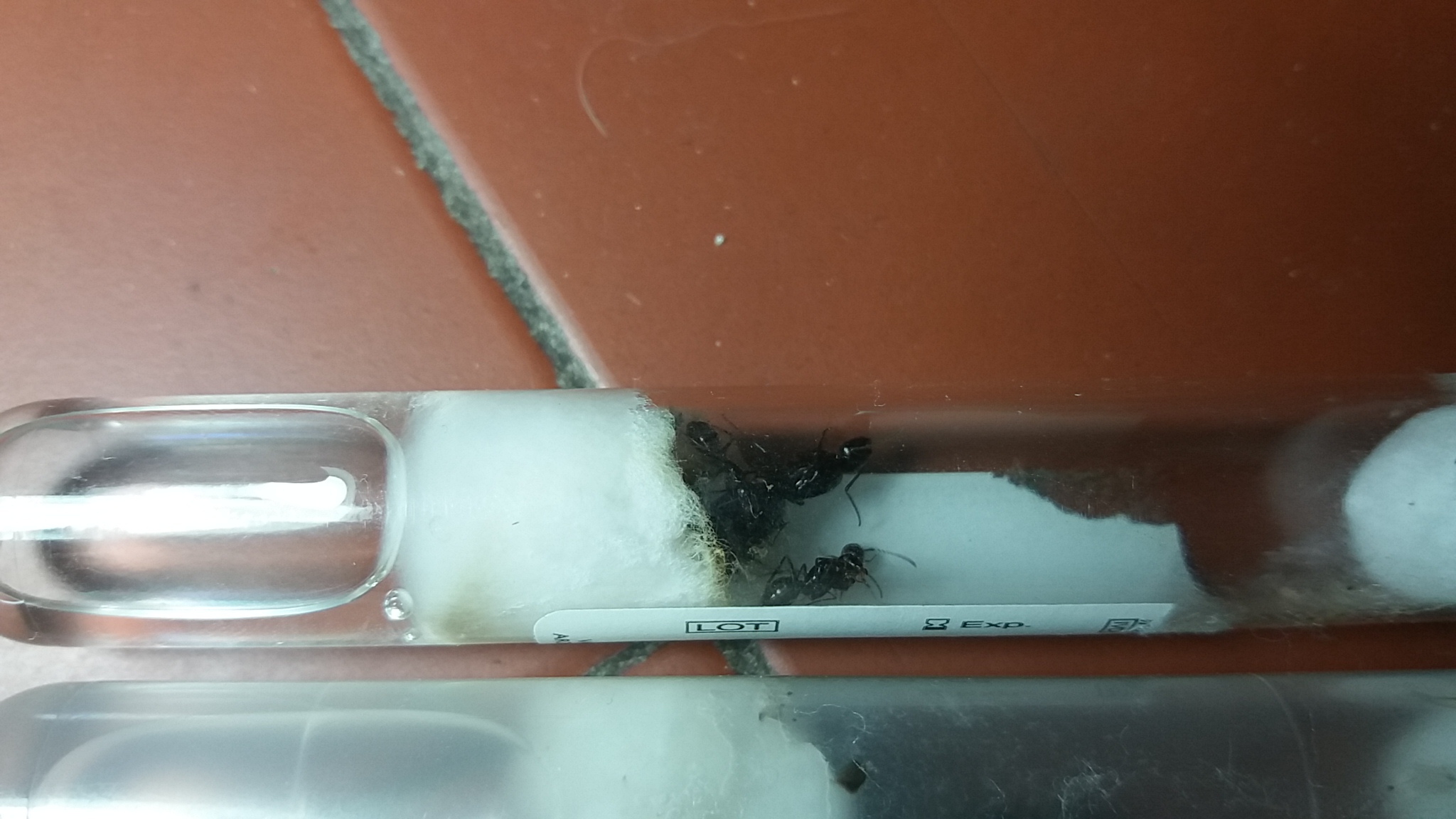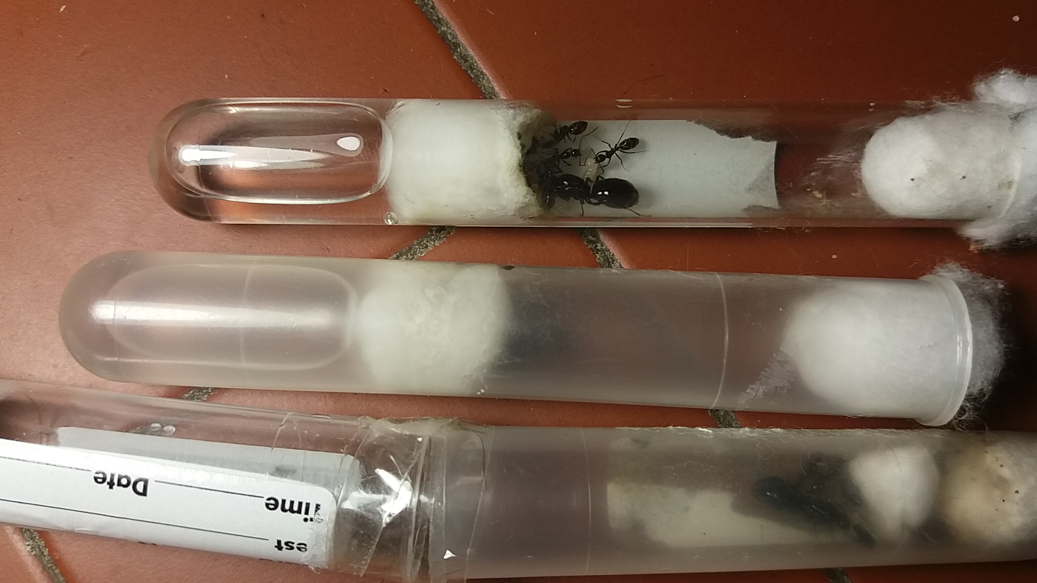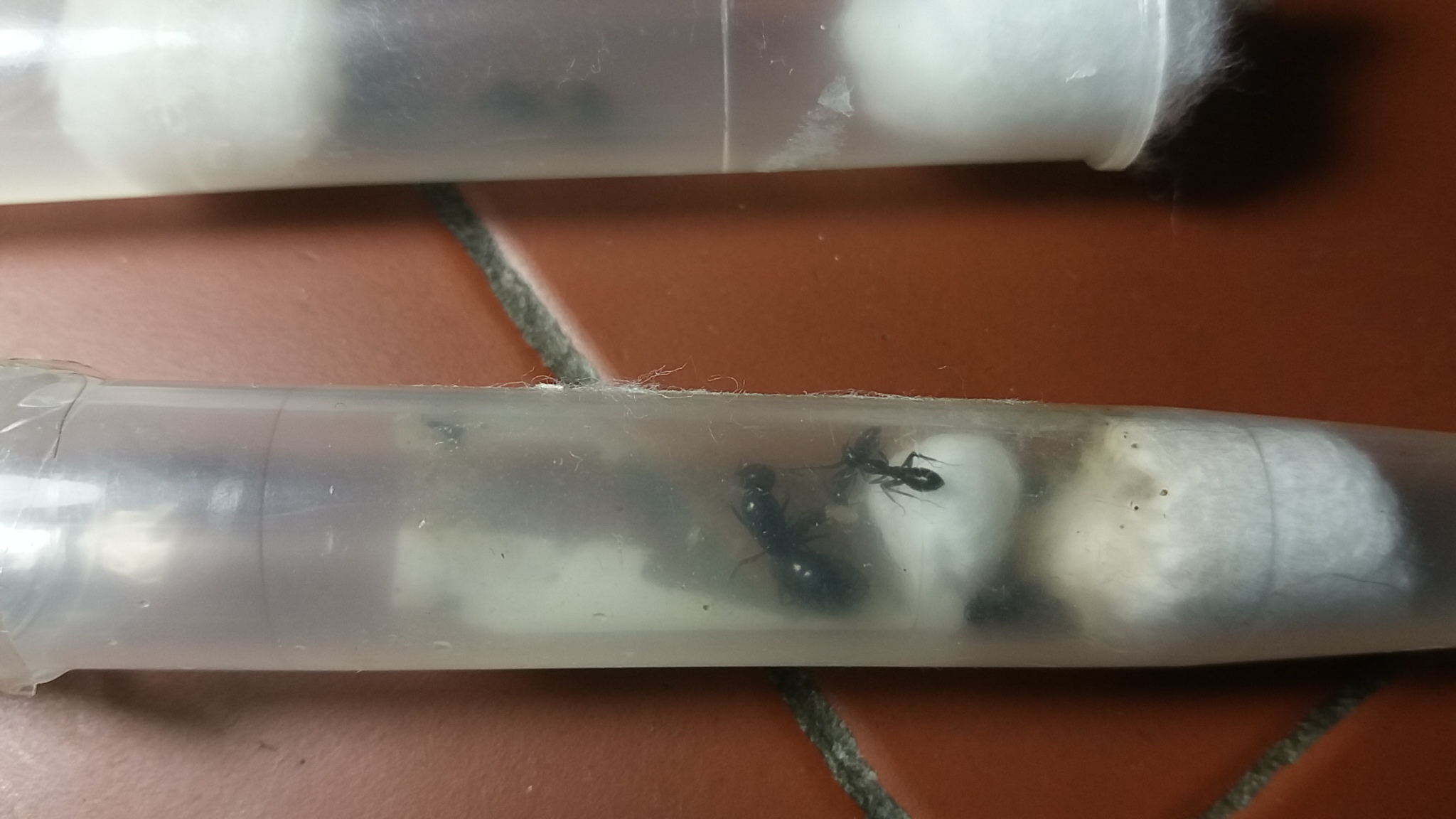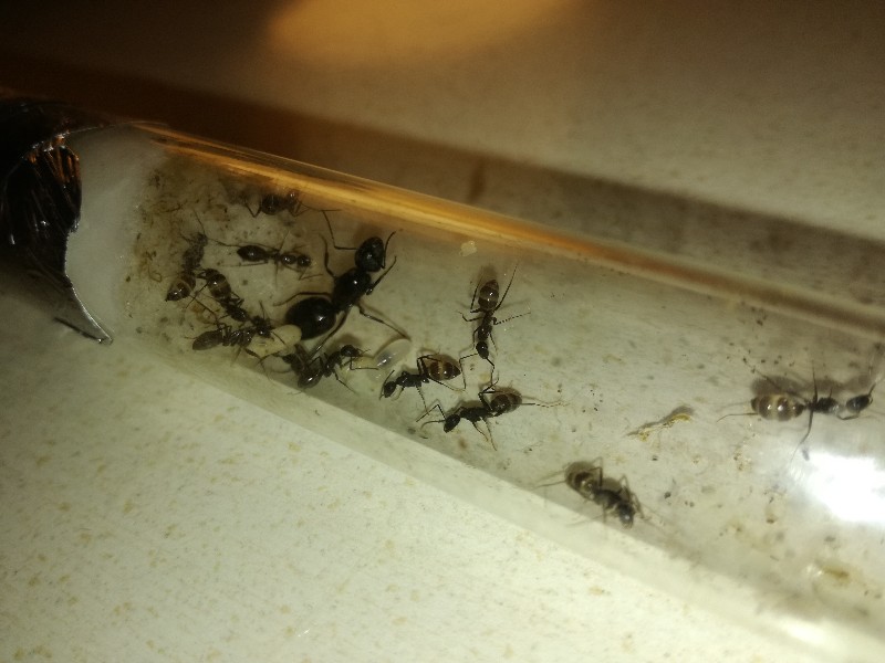 Robertino ha ragione, nelle provette presenti in foto vedo delle Camponotus aethiops di sicuro e una regina di Lasius sp. ma da foto così alla specie non ci arrivo.