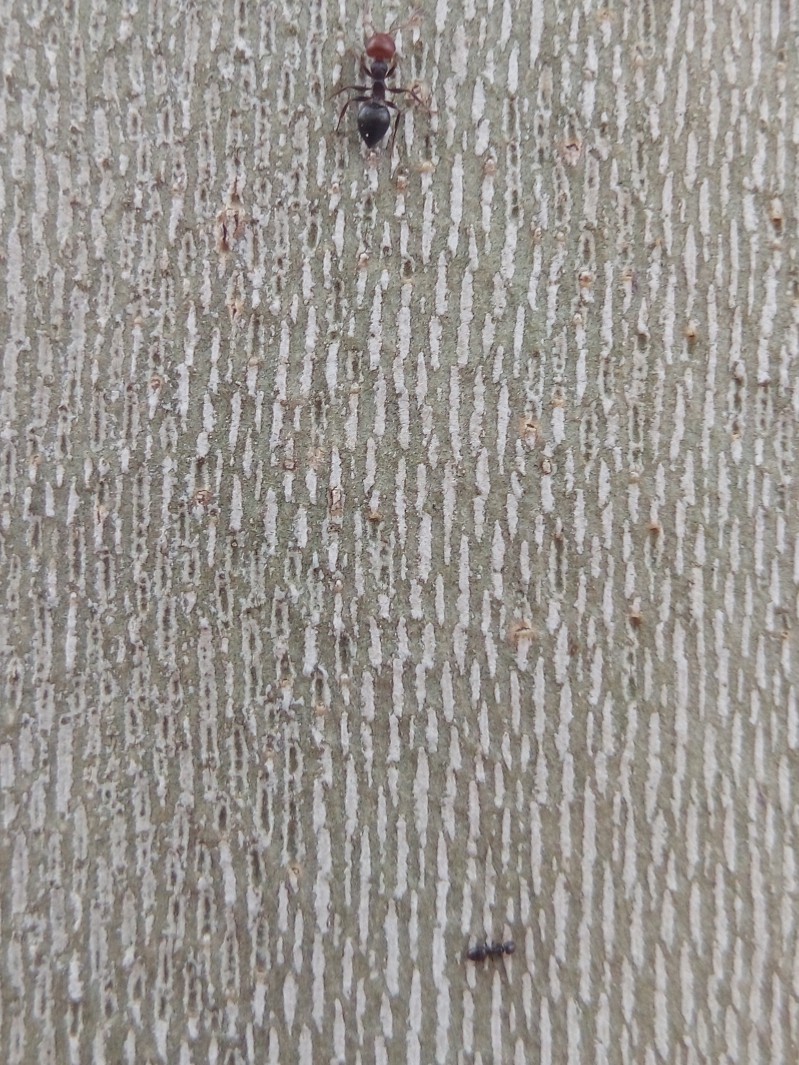 Altra foto in indubbia cattiva qualità... La formica in alto la conosco, ma il microbo in basso? Se ne vede qualcuna sui tronchi e sembrano foraggiatrici solitarie...