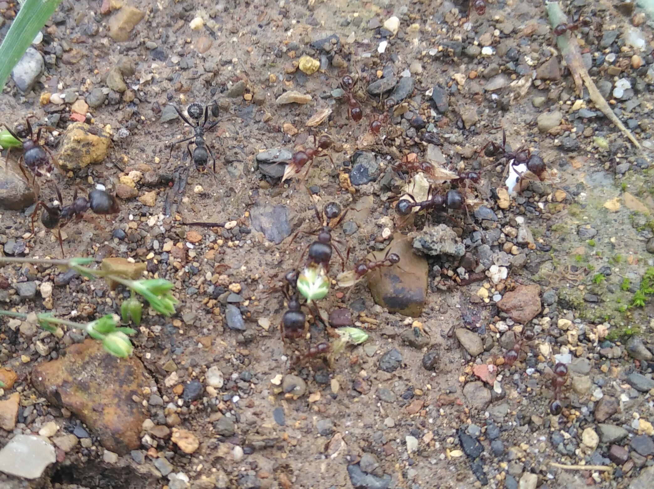 Nella seconda foto è presente pure un'operaia di Aphaenogaster, che è la più scura e quella col capo più affusolato nella foto.